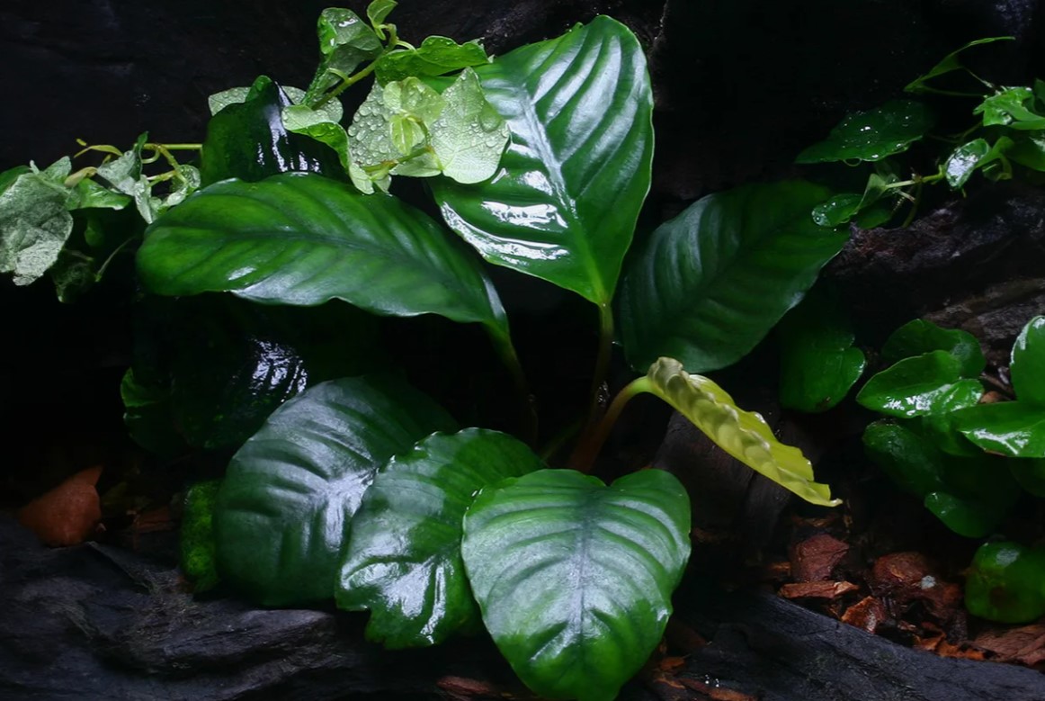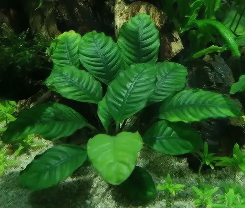 Происхождение: родом из Западной Африки — влажных тропических лесов с мутной, мягкой водой. Это селекционная форма, выведенная за уникальную текстуру и форму листа.