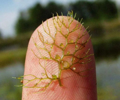 Пузырчатка — аквариумное растение, которое может использоваться как декоративное и хищное. В аквариумах чаще всего содержат пузырчатку обыкновенную (Utricularia vulgaris). ОписаниеПузырчатка обыкновенная — бескорневое растение, которое свободно плавает на поверхности воды.Особенности:Листья длиной до 8 см, многократно рассечённые, коричневато-зелёные.Цветки золотисто-жёлтые, образуют рыхлую кисть, приподнимающуюся над водой.Пузырьки на листьях — приспособления для ловли мелких водных организмов. При прикосновении мелкие животные попадают внутрь, а выбраться назад не могут. Со временем добыча погибает, а растение питается её соками. Условия содержанияНекоторые условия для содержания пузырчатки в аквариуме:Температура воды — 18–24°С.Кислотность — рН 6,3–7,4.Жёсткость — dH 2–12°.Освещение — яркое, интенсивностью не менее 0,6 Вт/л, продолжительность — 8–10 часов.Фильтрация воды — растение не терпит даже мелкого мусора и мути, из-за грязной воды может погибнуть.Высаживать пузырчатку в грунт не рекомендуется — даже если прикопать или прикрепить к камню часть растения, со временем она всё равно перегниёт, а остальная всплывёт на поверхность. РазмножениеПузырчатка обыкновенная размножается черенкованием — от материнского куста отделяют сформировавшуюся веточку. Отрезанную веточку оставляют свободно плавать на поверхности воды, и она быстро образует густые заросли. Также растение может размножаться вегетативным способом — путём деления материнского растения на части, которые вырастают в новые растения.?