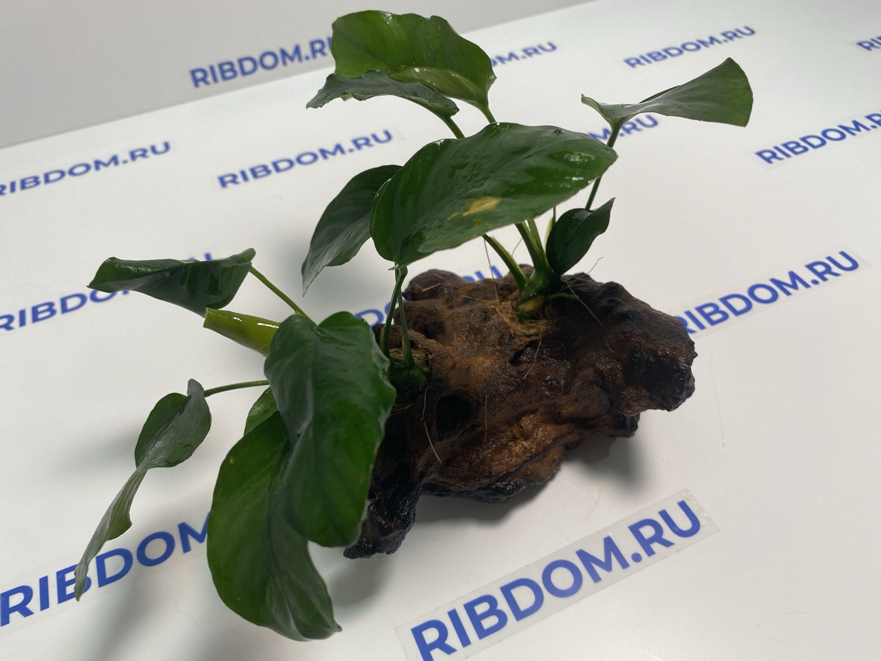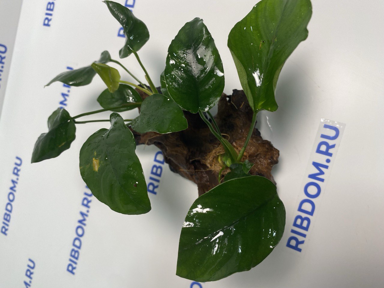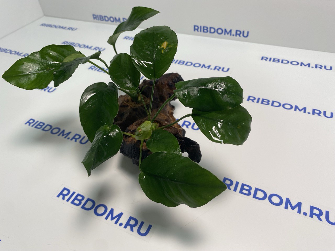 Это карликовый сорт Anubias barteri. Толстые темно-зеленые листья этого растения на коротком стебле одни из самых маленьких и компактных в роде Anubias, вырастающие всего до 8 см при общей высоте 12 см.