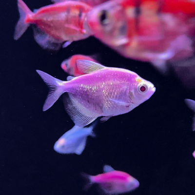 основного оформления тернеций Гло — их способность светиться в темноте или при ультрафиолетовом/синем освещении, что делает их очень популярными для создания аквариумов в стиле «неон» или «флуоресцентный».