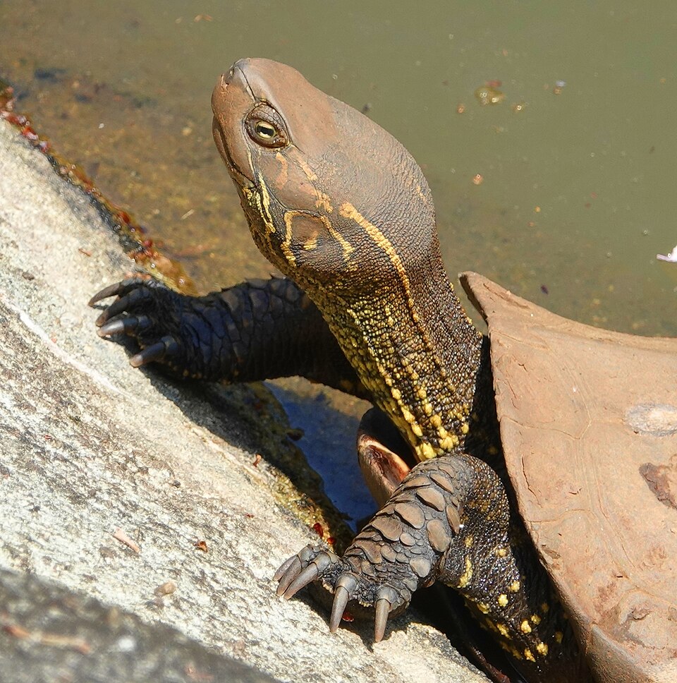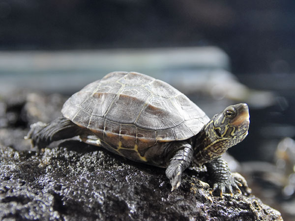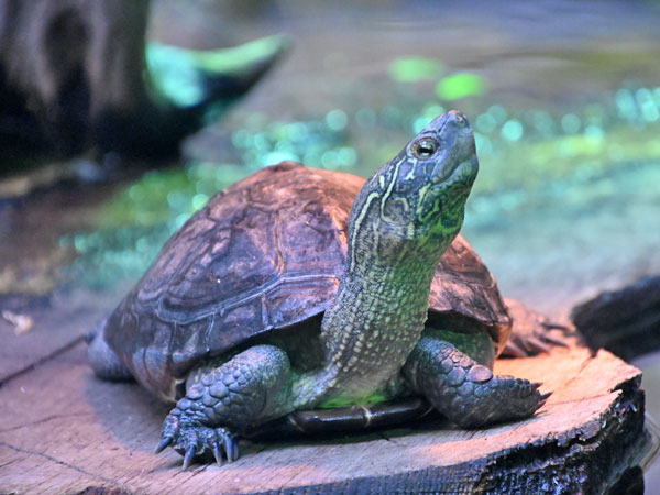 - Кормление. В неволе кормят сырой нежирной речной рыбой с внутренностями и костями, кормовыми насекомыми, улитками, лягушатами, мышатами, овощами, зеленью, специализированными кормами для водных черепах. Молодых черепах кормят ежедневно, взрослых — 3–4 раза в неделю.