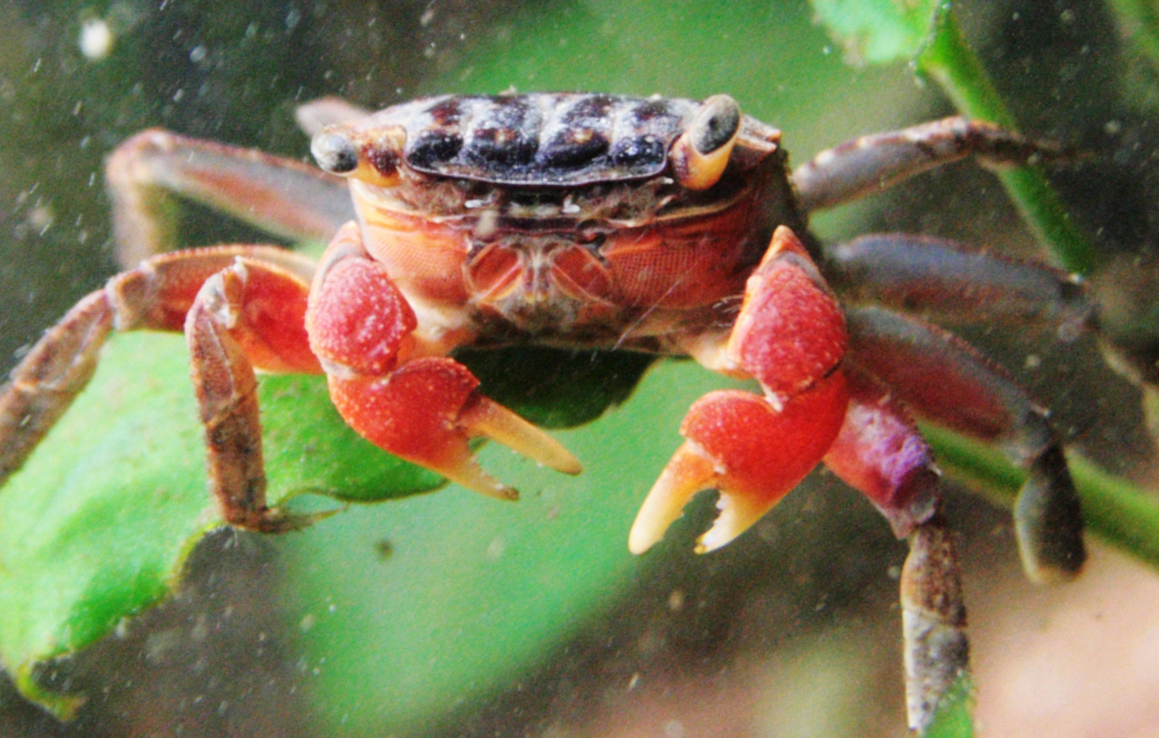 Perisesarma bidens (красный клешневидный краб) — полуназемный вид из семейства Sesarmidae, известный своими яркими красными клешнями.