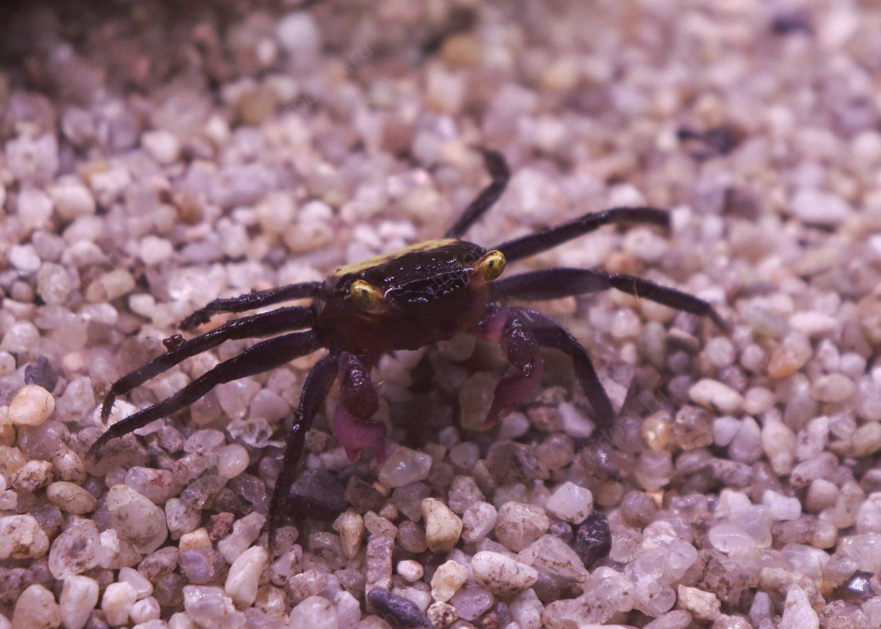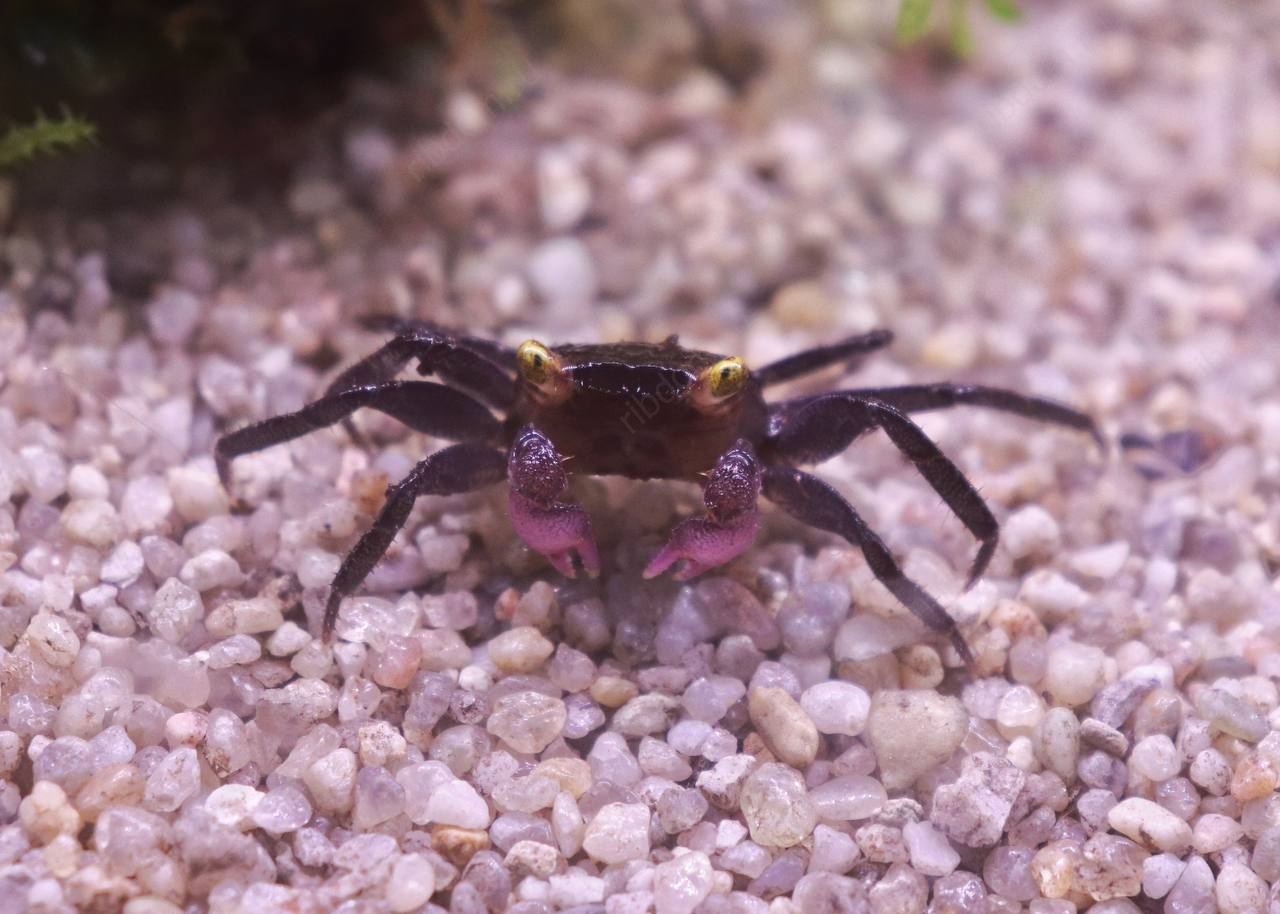 Краб-вампир пурпурный (Geosesarma dennerle) — миниатюрный декоративный краб, получивший своё название за необычный внешний вид. Яркие пурпурные клешни, контрастирующие с тёмно-фиолетовым телом, и жёлтые «светящиеся» глаза делают краба-вампира одним из самых эффектных обитателей акватеррариумов. Подходит для содержания в небольших группах, неприхотлив при правильных условиях.