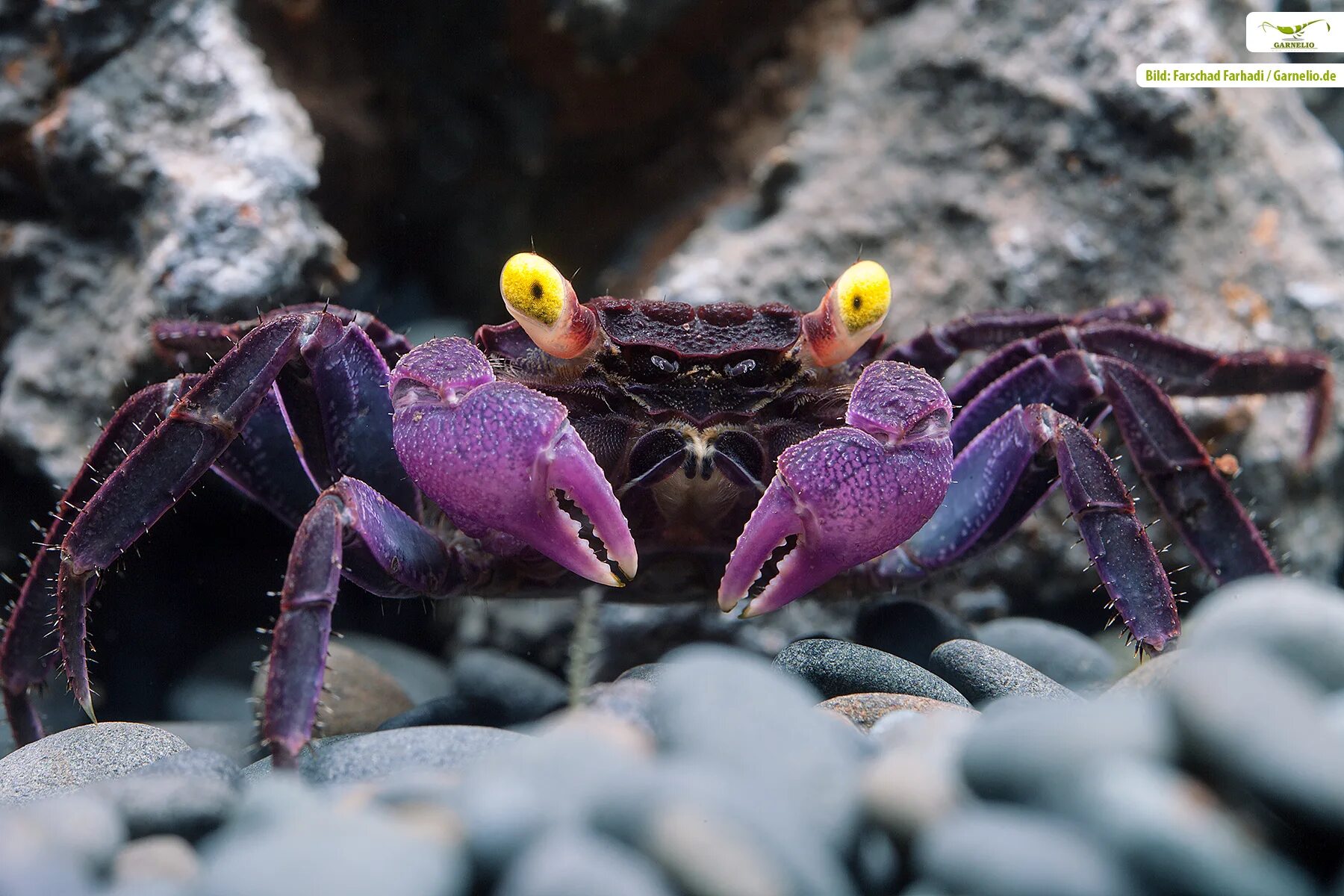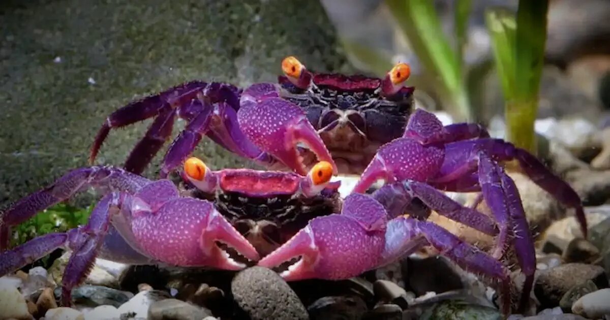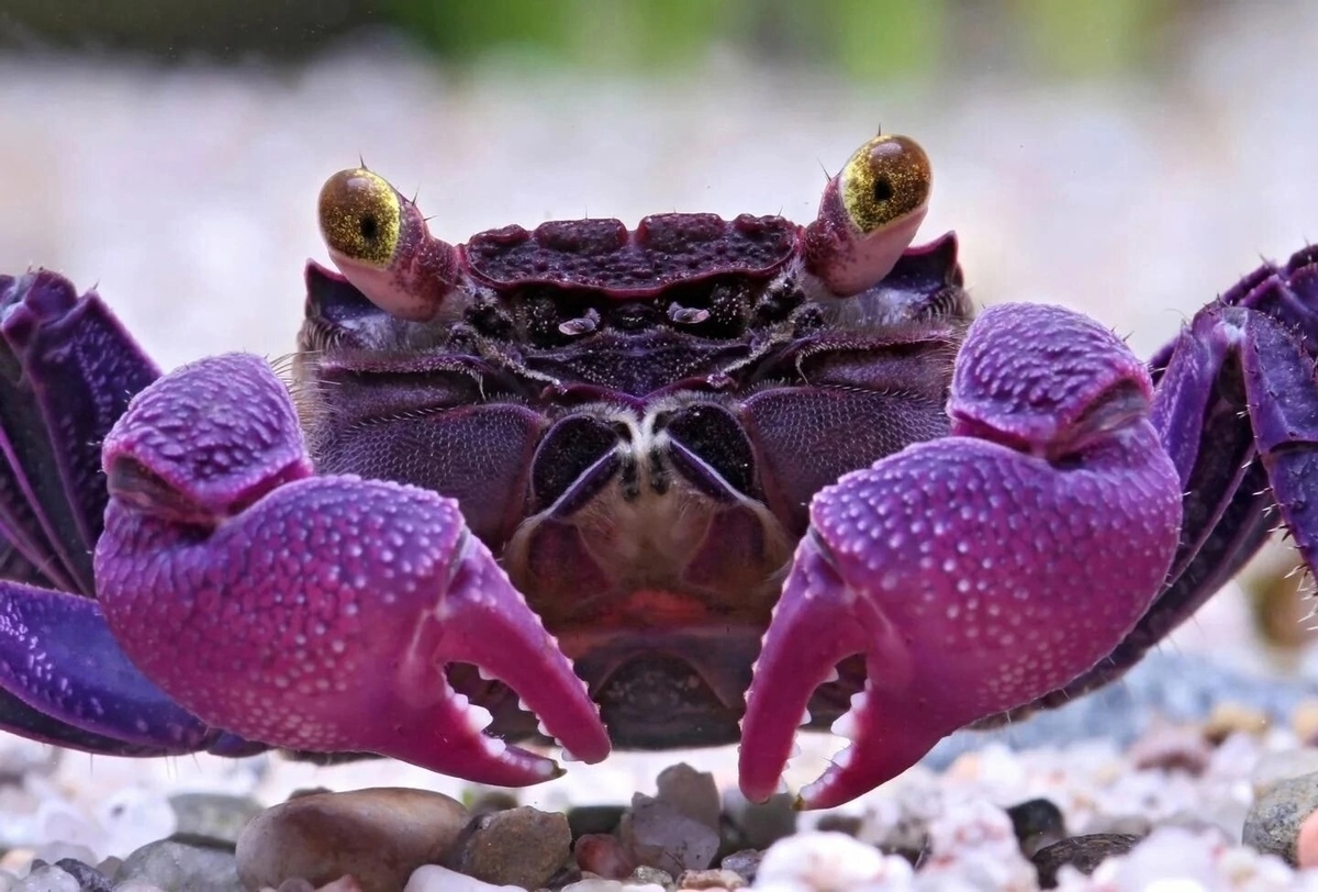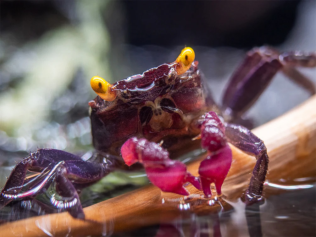 Краб-вампир пурпурный (Geosesarma dennerle) — миниатюрный декоративный краб, получивший название за необычный внешний вид.