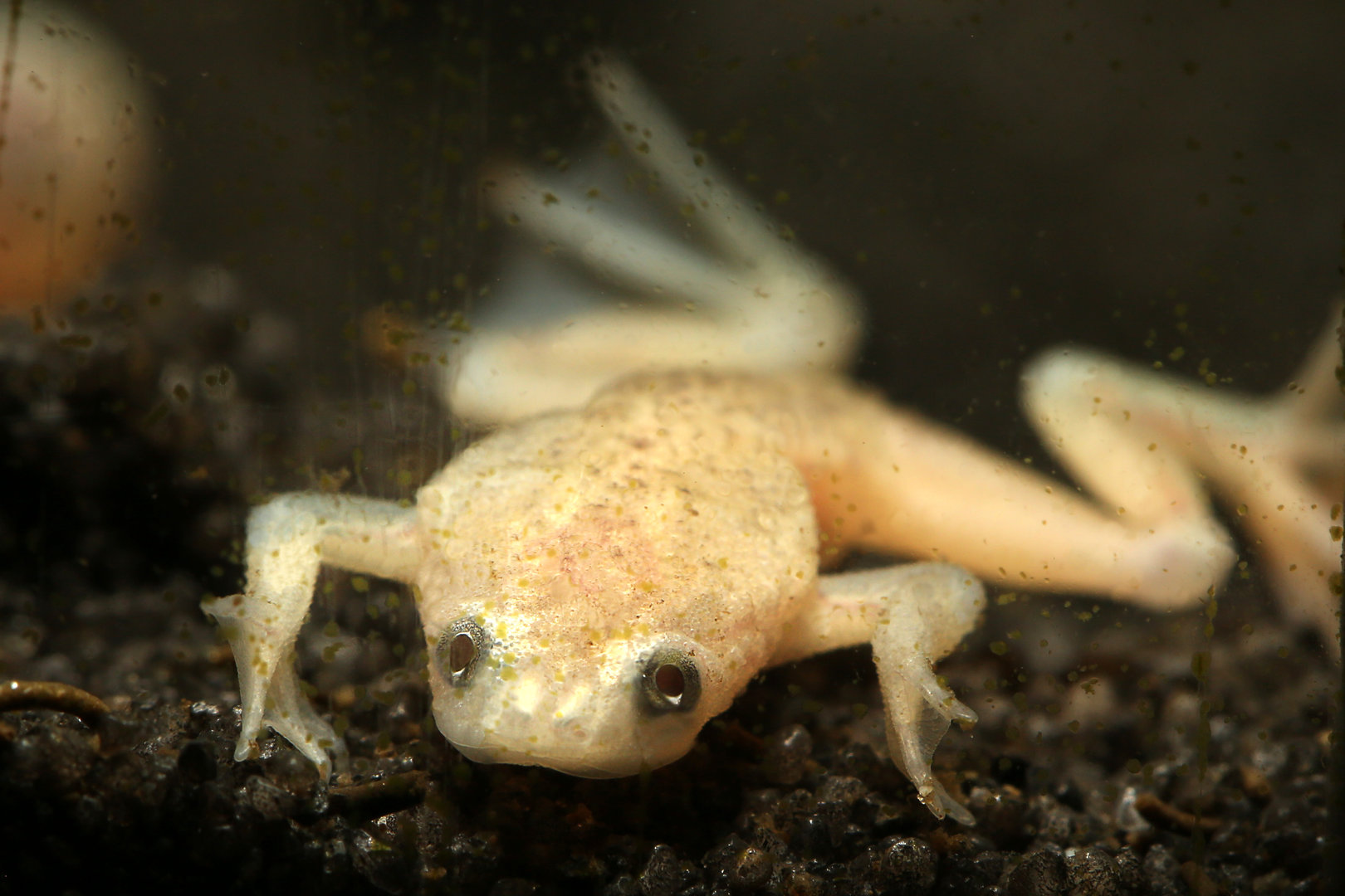 Перепонки между пальцами на передних лапках — характерный признак вида. Эта особенность и дала название лягушке: научный термин Hymenochirus дословно переводится как «кожисторукий».