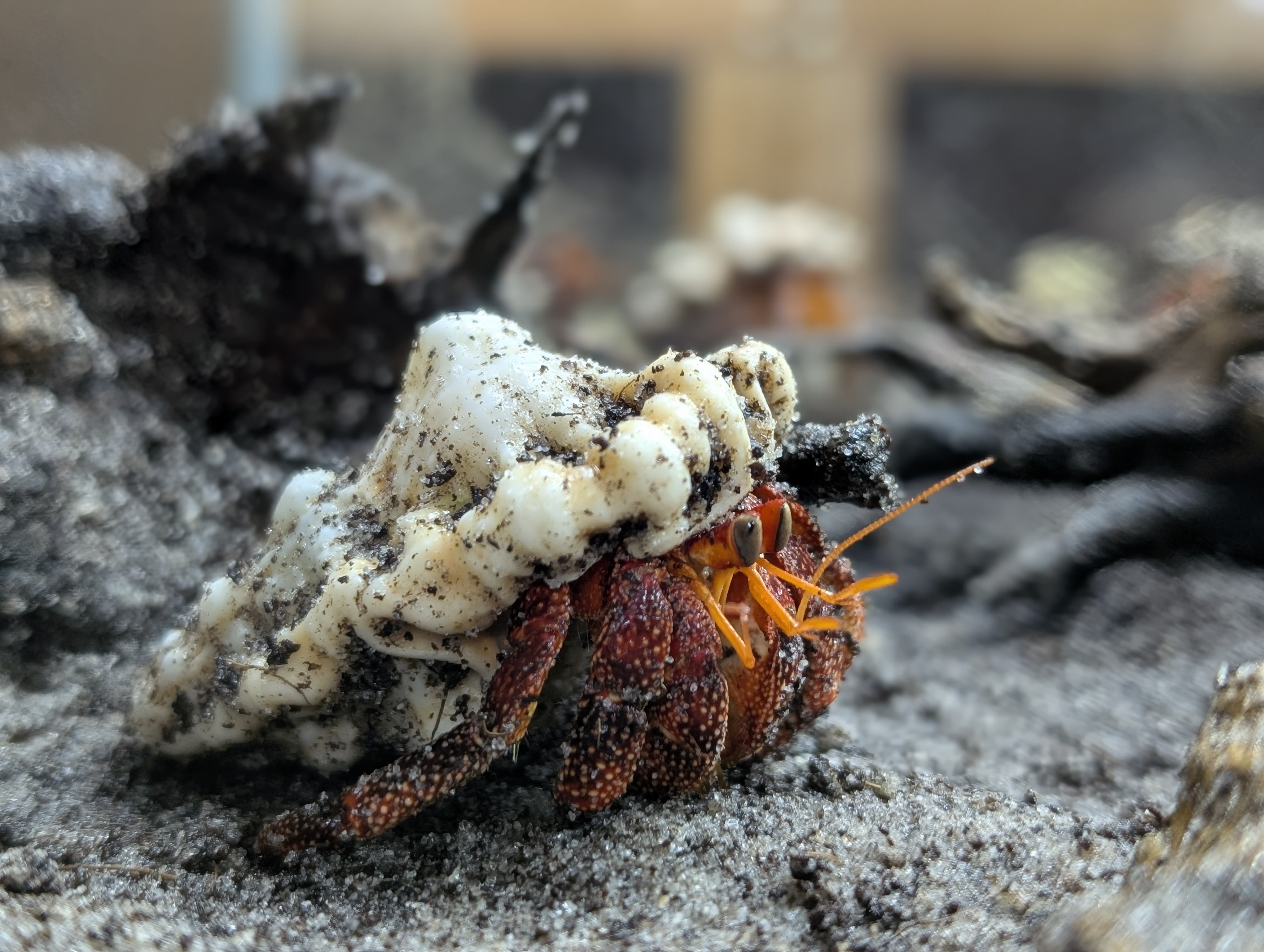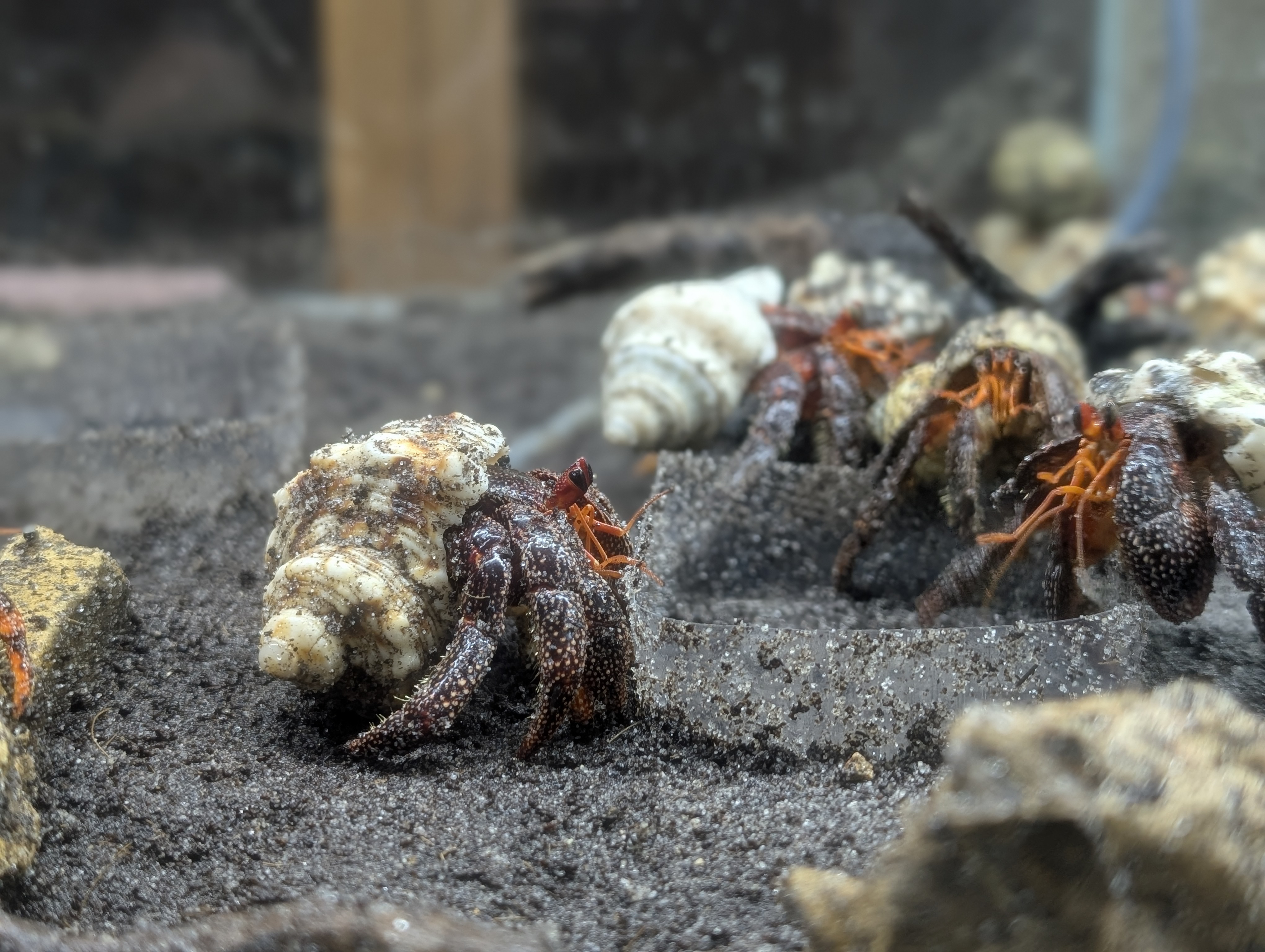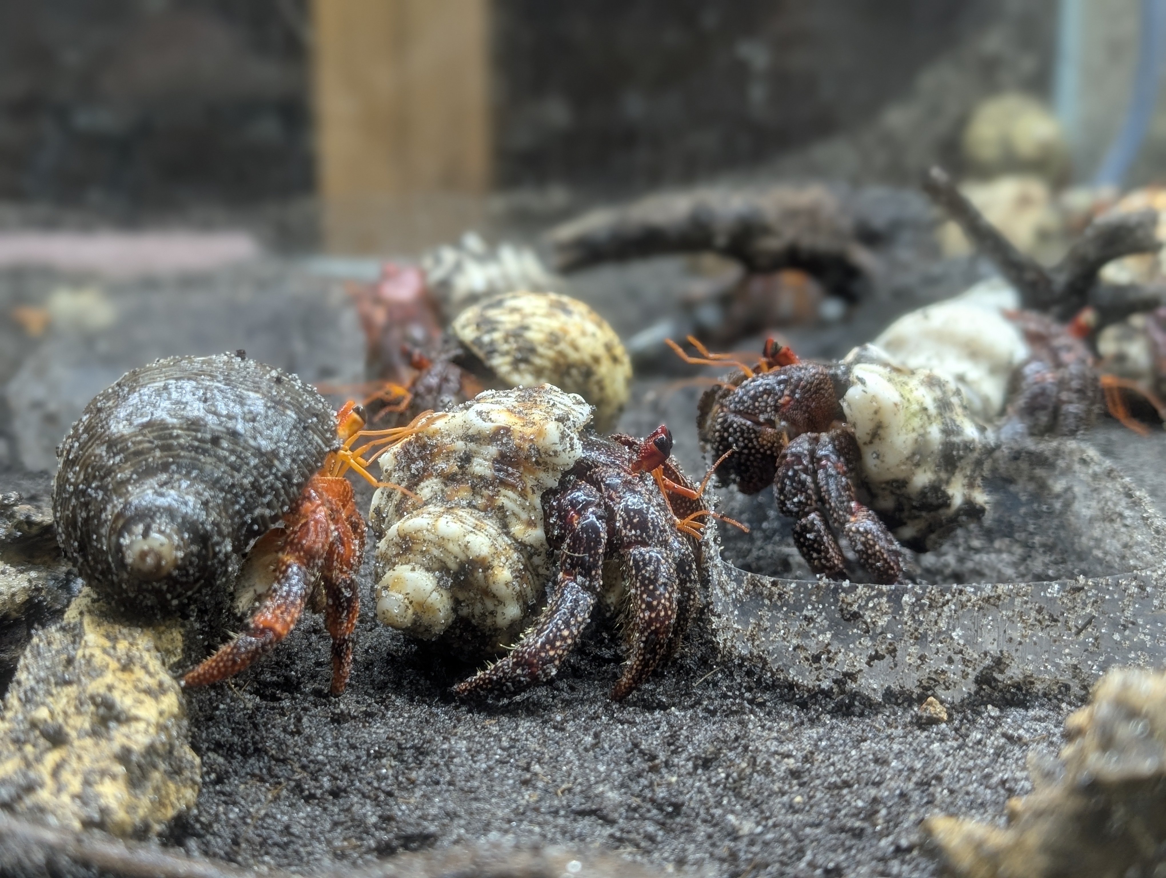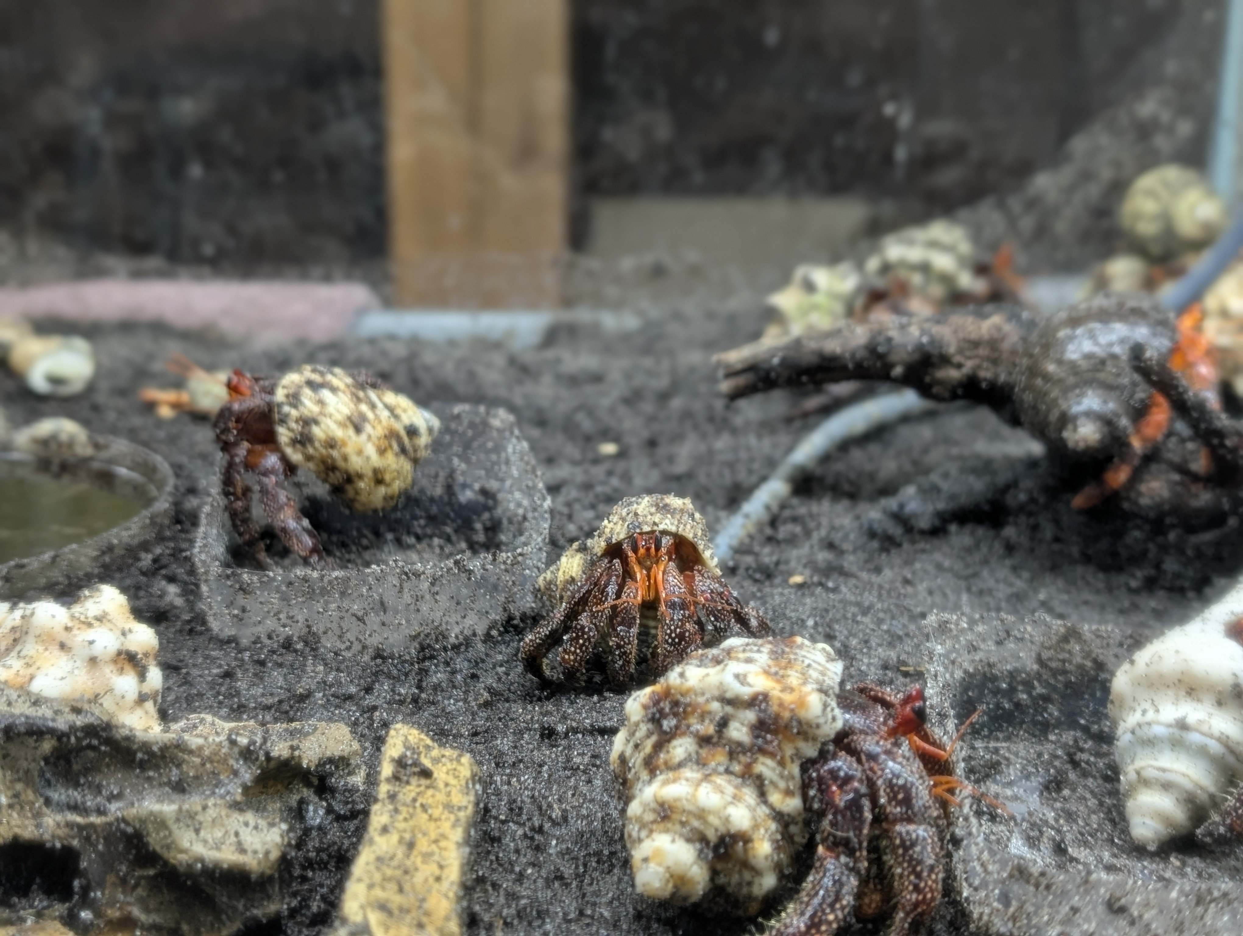 - На дно террариума следует положить пустые раковины, чтобы рак-отшельник мог сменить домик при необходимости.