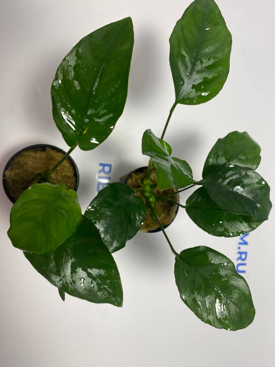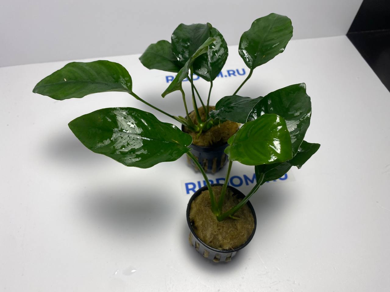 - Посадка — классический эпифит. Не стоит закапывать ползучее корневище в грунт. Растение необходимо прикрепить к декору (коряге, камню, пористому субстрату) с помощью лески, хлопковой нити или цианакрилатного аквариумного клея.