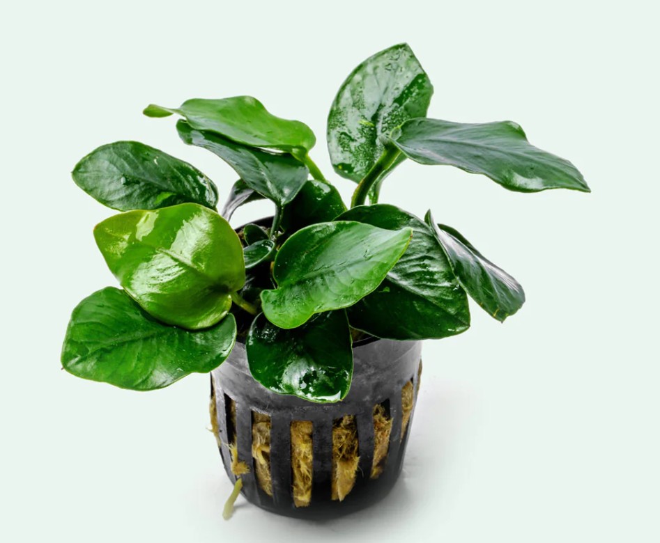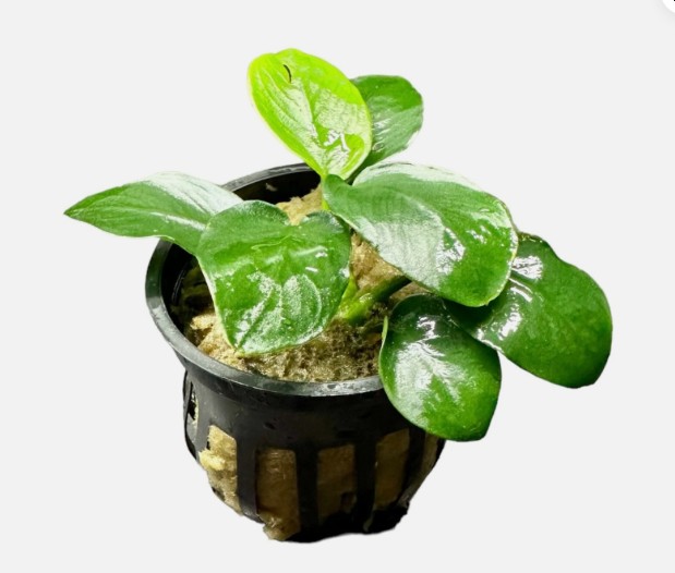 Анубиас нана «Толстый лист» (Anubias barteri var. nana) — одна из самых популярных и неприхотливых форм анубиаса. Отличается прочными, плотными тёмно-зелёными листьями овальной формы, которые делают его особенно устойчивым к поеданию рыбами и повреждениям. Подходит для любых аквариумов, включая цихлидники, акваскейпы и даже аквариумы с активными рыбами.