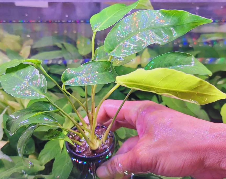 • Посадка: Требует классического для анубиасов метода: крепления корневища к декору (камень, коряга, пористый субстрат) с помощью лески или аквариумного клея. Закапывать корневище в грунт нельзя.