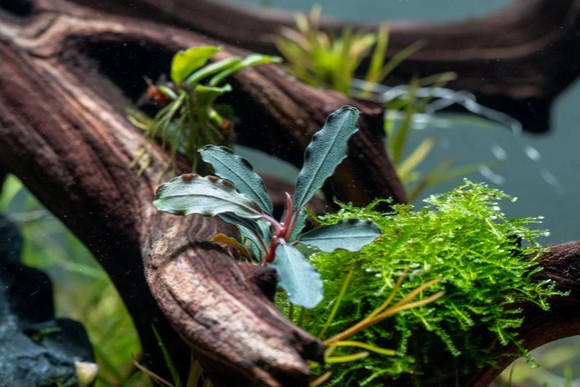 - Посадка: Корневище нельзя закапывать в грунт — это приведёт к гибели растения. Буцефаландру необходимо закрепить на камне, коряге или другой декорации с помощью лески, нити или капли аквариумного клея . Идеально подходит для оформления декораций, имитирующих природные биотопы .