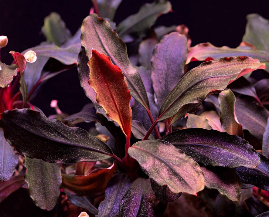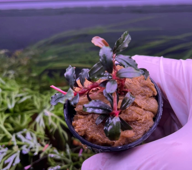 • Подача CO₂ и удобрения: Не обязательны, но очень желательны. CO₂ и жидкие удобрения с микроэлементами (особенно железом) ускоряют медленный рост и делают окраску листьев более насыщенной и яркой .