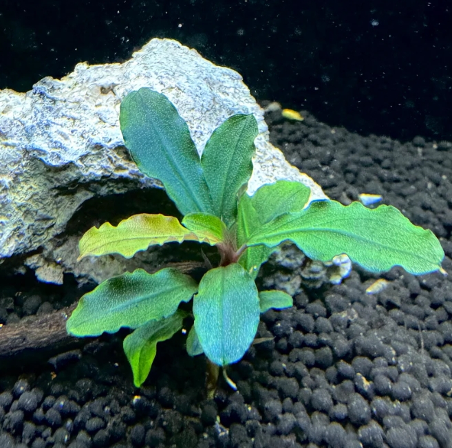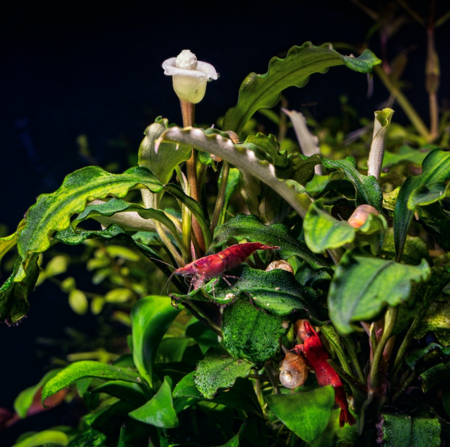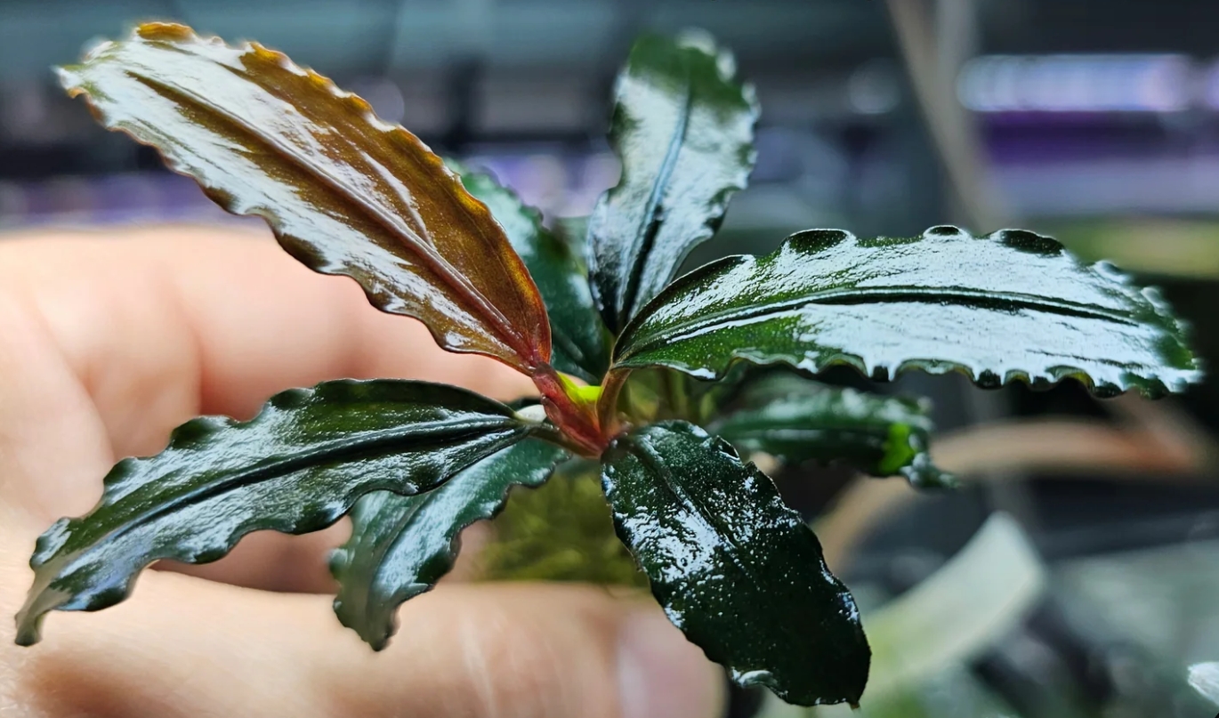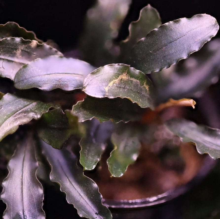 Буцефаландра Артемис — это элегантное и достаточно редкое аквариумное растение, которое выделяется своими изящными, удлиненными листьями с волнообразным краем. Окрас пластин варьируется от насыщенного темно-зеленого до глубоких сине-стальных и бордовых оттенков, а при ярком освещении на поверхности отчетливо проступают серебристые крапинки. Этот сорт отличается благородным внешним видом и способностью создавать плотные, аккуратные заросли, которые эффектно смотрятся в любом современном акваскейпе.