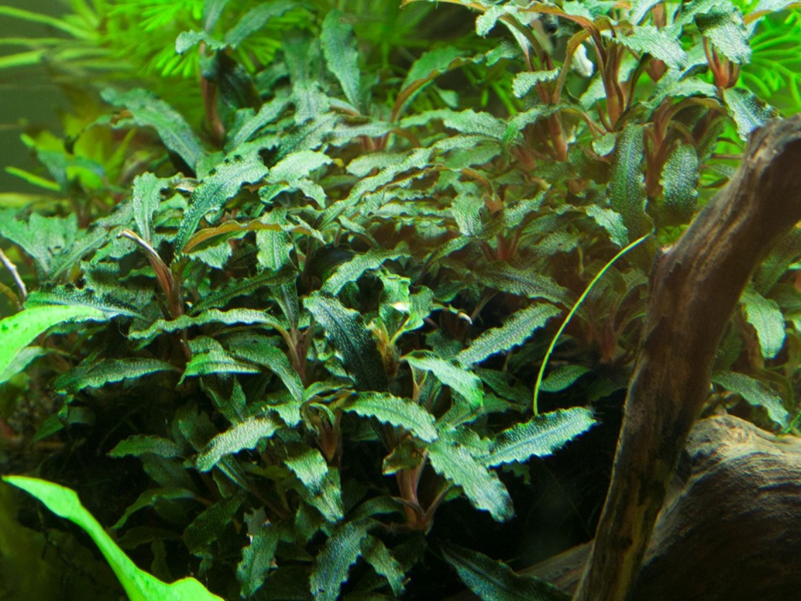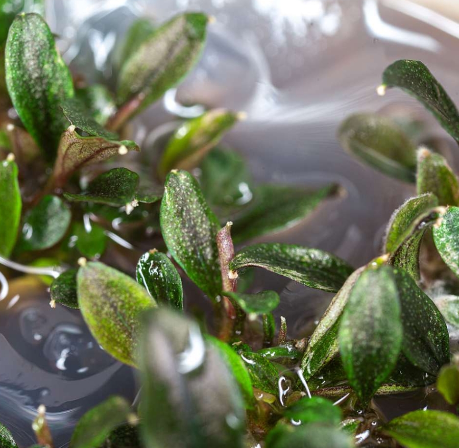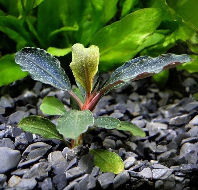 Буцефаландра Красная Мини — это эксклюзивное аквариумное растение, которое приковывает взгляд своими глубокими винными и красно-коричневыми оттенками. Его миниатюрные листья обладают характерным блеском и легкой волнистостью по краям, что придает кусту ажурный и дорогой вид. В отличие от многих других видов, этот сорт сохраняет насыщенность цвета даже при умеренных условиях, становясь ярким цветовым акцентом в любом подводном саду.