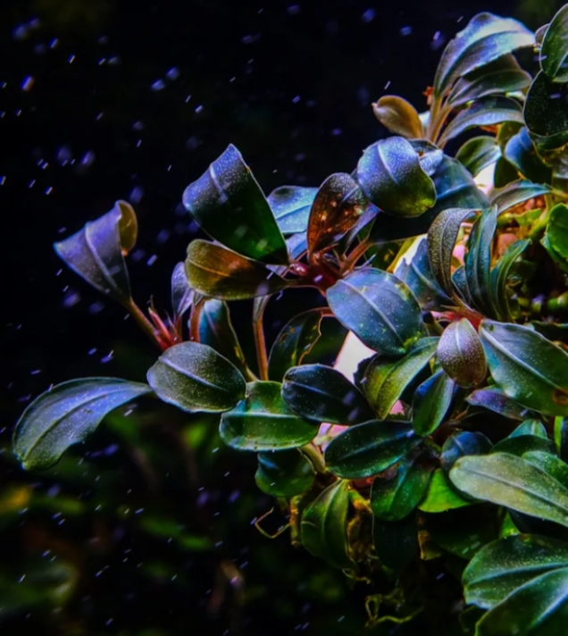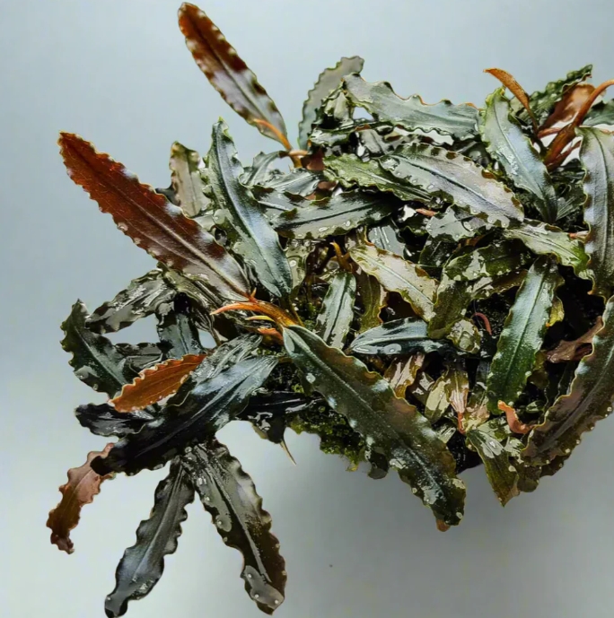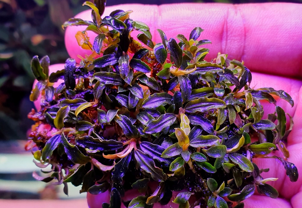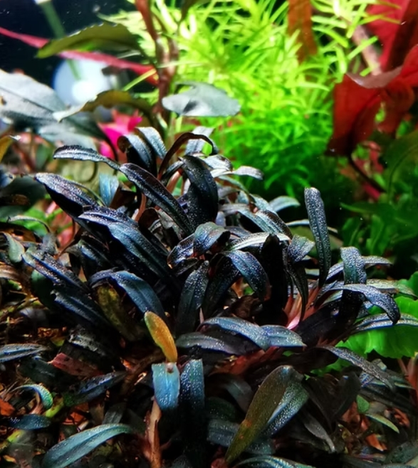 Буцефаландра Мини Черный Ковер — это изысканное и редкое аквариумное растение, которое ценится акваскейперами за свои миниатюрные размеры и глубокий, насыщенный темный окрас. Листья этого сорта имеют уникальный синевато-черный отлив с характерным металлическим крапом, который эффектно переливается под водой. Благодаря своей способности плотно разрастаться на субстрате, она формирует роскошный «ковер», оправдывая свое название.