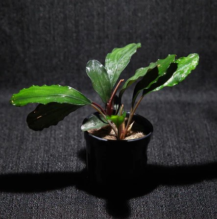 Буцефаландра Green Broad Leaf — это эффектный и солидный представитель рода, который выделяется среди других буцефаландр своими крупными размерами и фактурными листьями. Листовые пластинки от эллиптической до яйцевидной формы, достигающие до 14 см в длину и 4 см в ширину, с закруглённой верхушкой и часто волнистыми краями . Окраска листьев варьируется от зелёного до тёмно-зелёного цвета сверху, снизу листья могут иметь красновато-фиолетовый оттенок, а средняя и боковые жилки часто окрашены в красноватые тона . Благодаря мощному, ползучему или восходящему стеблю (до 4 мм в диаметре) и способности достигать высоты 15–20 см, это растение идеально подходит для создания структурных акцентов на среднем и заднем плане аквариума .