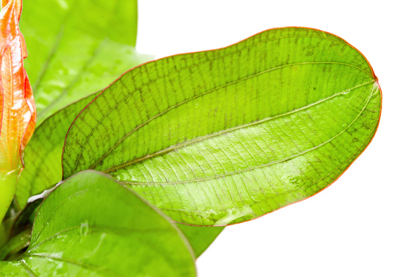 Эхинодорус Фенси Твист — это уникальный и декоративный селекционный сорт, который привлекает внимание не только цветом, а еще и необычной формой своих листьев. Его главная особенность — сильная закрученность и волнистость листовой пластины. Листья неширокие, лентовидные, насыщенного зелёного цвета с легким розовым отливом. Они причудливо изгибаются и переплетаются, создавая объёмный, кудрявый куст с выраженной текстурой. Растение формирует пышную розетку средней высоты, становясь интересным структурным акцентом.