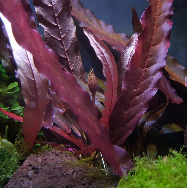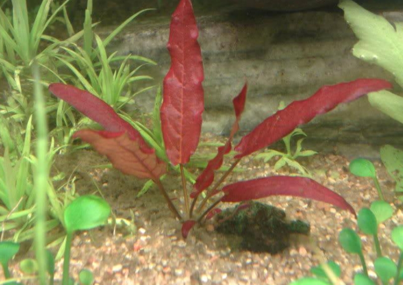 Барклайя длиннолистная красная (Barclaya longifolia "Red") — это одно из самых аристократичных и желанных растений в коллекции опытного аквариумиста. Свое название она получила в честь английского садовода Роберта Барклая. Это великолепное розеточное растение обладает уникальной текстурой листьев: они тонкие, нежные и словно отлиты из благородного шелка с характерным глянцевым блеском. Окраска варьируется от темно-оливкового до глубокого винно-бордового и коричнево-красного цвета, что делает её настоящей жемчужиной любого подводного сада.