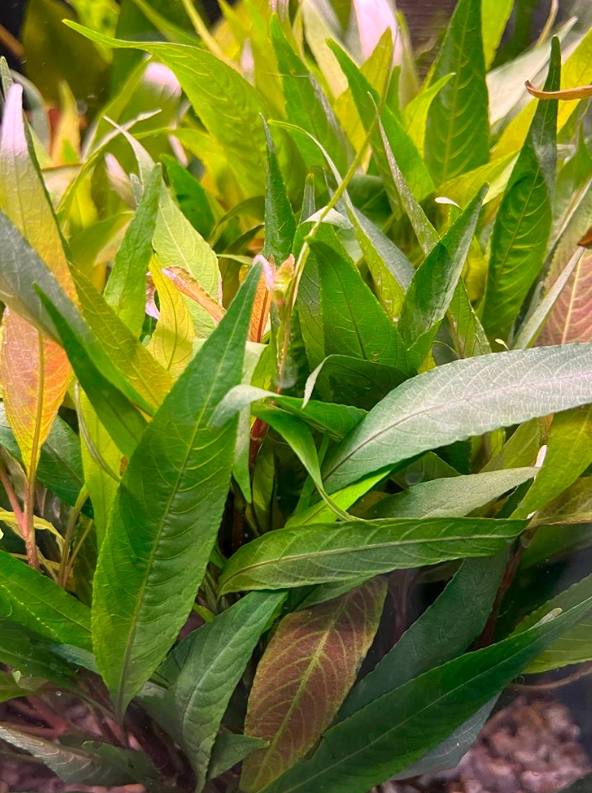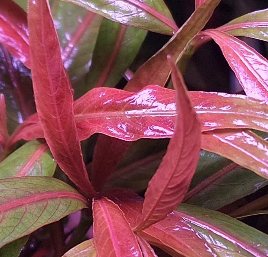 Лимонник иволистный красный (Hygrophila salicifolia) — это великолепная селекционная форма классической гигрофилы. Свое название растение получило за поразительное сходство своих узких, длинных листьев с листвой плакучей ивы. Главная изюминка этой вариации — способность окрашивать молодые листья и верхушки в благородные медно-красные, розовые и бронзовые тона, что в сочетании с насыщенной зеленой нижней частью куста создает эффектный градиент.