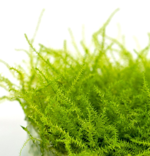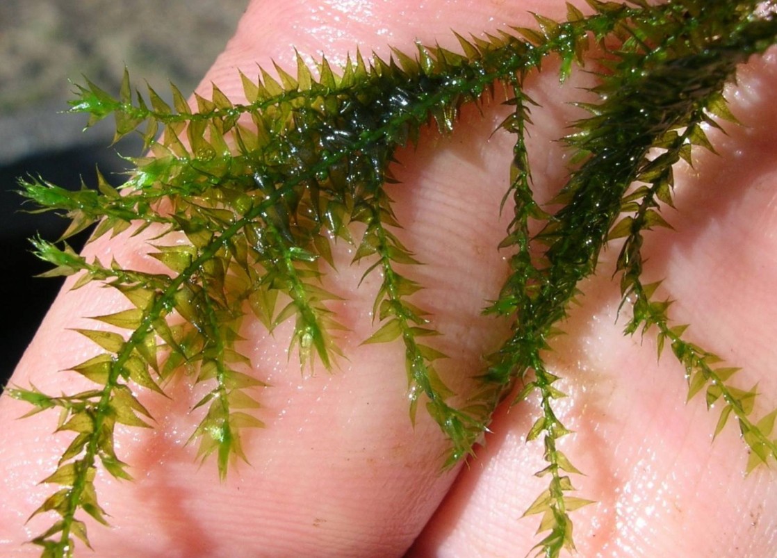 Мох стринг, или Лептодикциум береговой (Leptodictyum riparium), — это один из самых необычных вертикально растущих мхов, чье название переводится как «струна» или «нить». В отличие от большинства своих собратьев, формирующих пушистые кочки, мох стринг стремится строго вверх, создавая тонкие, изящные зеленые колонны. Его длинные, слаборазветвленные стебли с крошечными заостренными листочками выглядят в аквариуме как тянущиеся к поверхности живые нити, что позволяет использовать его для создания уникальных визуальных эффектов «восходящих потоков» зелени и вертикального зонирования пространства.