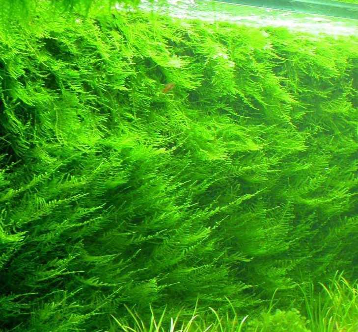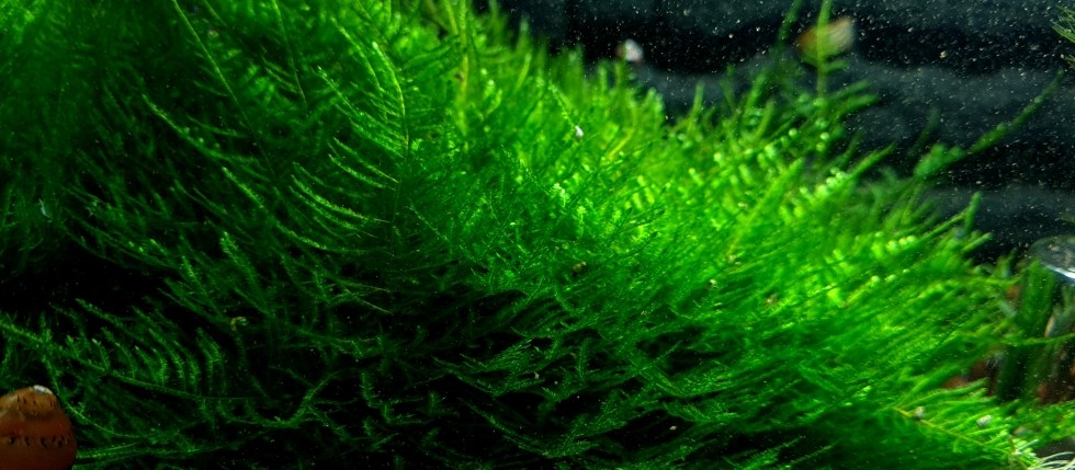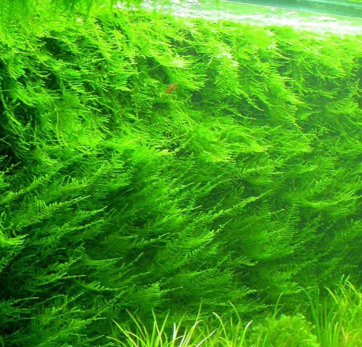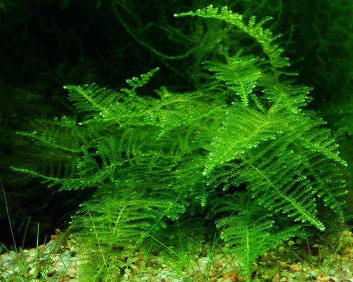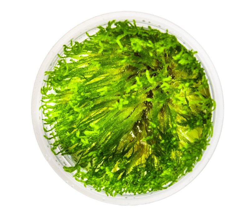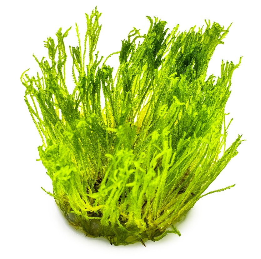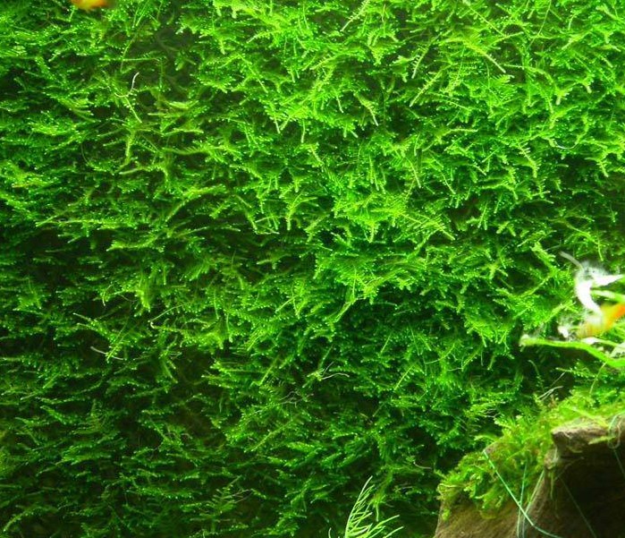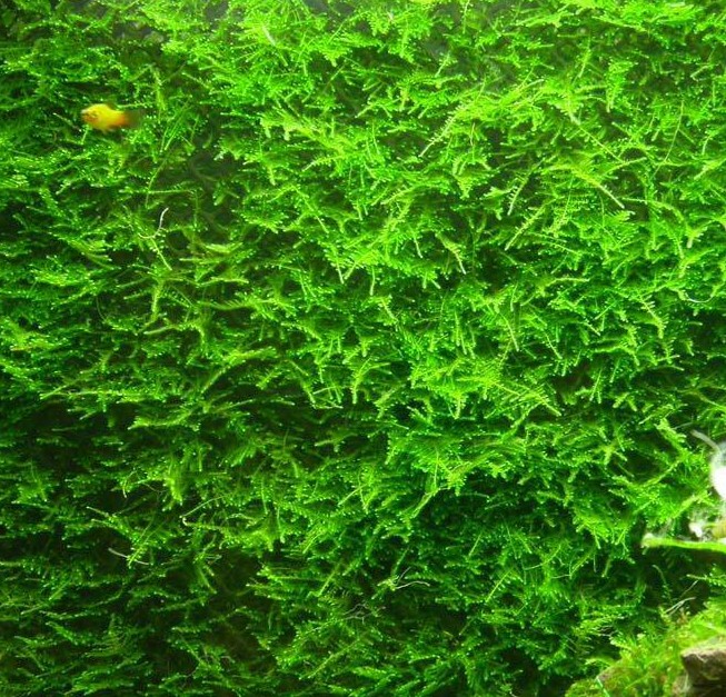 Мох Тайвань (Taxiphyllum alternans) — это изысканный и очень популярный в акваскейпинге вид, который часто путают с яванским, однако Тайвань обладает куда более правильной и декоративной структурой. Его веточки ветвятся очень густо и симметрично, напоминая миниатюрные перья или аккуратные треугольные ваи. В аквариуме он формирует плотные, пушистые кочки насыщенного зеленого цвета, которые выглядят очень опрятно и благородно, не создавая ощущения хаотичных зарослей.