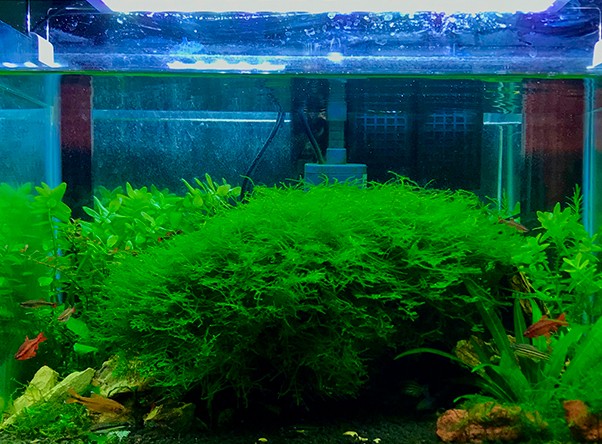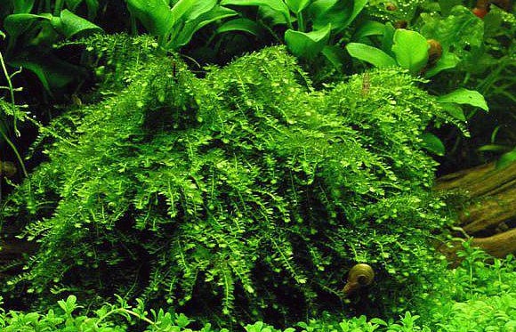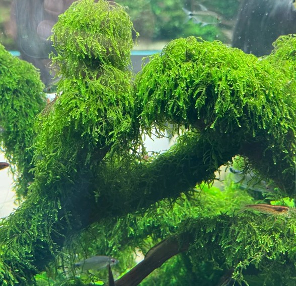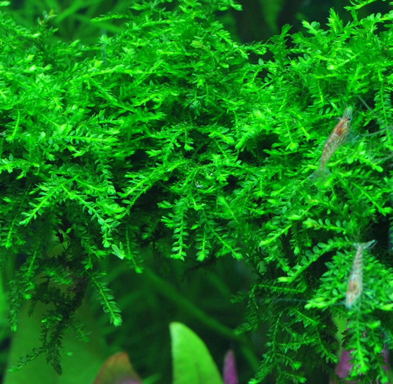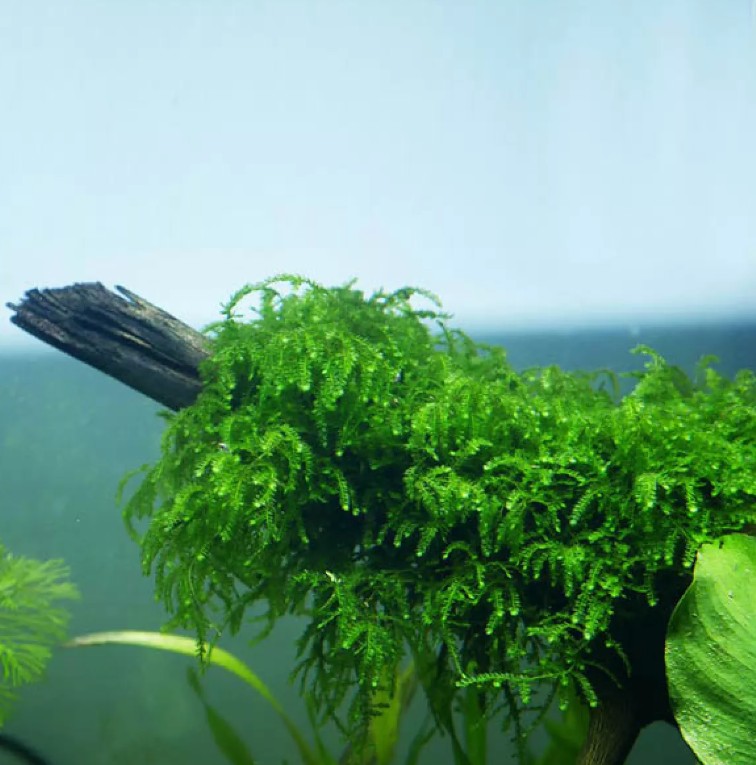 Мох плачущий, или Випинг (Vesicularia ferriei 'Weeping'), — один из самых поэтичных и востребованных мхов в акваскейпинге. Свое название он получил за уникальный характер роста: его ветви под собственным весом изящно склоняются книзу, напоминая кроны плакучих ив. Этот мох формирует плотные, ярко-зеленые свисающие пряди, которые создают неповторимый эффект вертикального движения и глубины, превращая обычные коряги в сказочные деревья с поникшими ветвями.
