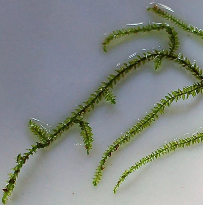 Мох Тамарасер (Thamnobryum sp. 'Tamaraserry') — это редкий коллекционный мох премиум-класса, который ценится акваскейперами за свою необычную «древовидную» структуру. Его жесткие, темно-зеленые побеги по строению напоминают миниатюрные пальмовые ветви или папоротники. В аквариуме он растет очень аккуратно, формируя благородные, графичные куртины. Это растение идеально подходит для создания детализированных ландшафтов, где каждый элемент должен выглядеть максимально естественно и утонченно, напоминая реликтовые лесные заросли в миниатюре.