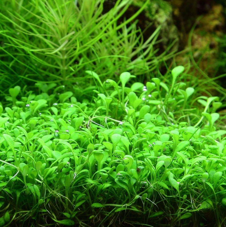 Глоссостигма (Glossostigma elatinoides) — это миниатюрное почвопокровное растение, которое называют «королевой» аквариумных газонов . Её крошечные, округлые листья ярко-зелёного цвета размером всего 5–8 мм образуют на дне аквариума сплошной, плотный ковёр высотой 2–3 см . Впервые растение было использовано в акваскейпинге легендарным Такаши Амано в 1980-х годах и с тех пор остаётся одним из самых желанных элементов для создания природных композиций .