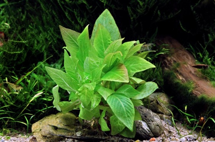 Гигрофила коримбоза «Компакт» (Hygrophila corymbosa 'Compact') — это специально выведенная карликовая форма гигрофилы лимонник. Она идеально подходит для тех, кто хочет видеть в своем аквариуме сочную, широколистную зелень, но ограничен в объеме. Это растение формирует невероятно плотные, приземистые кусты с укороченными стеблями, которые выглядят как пышные розетки. При интенсивном освещении верхушки молодых листьев могут приобретать благородный красновато-коричневый или бронзовый оттенок, что добавляет композиции цветовой глубины.