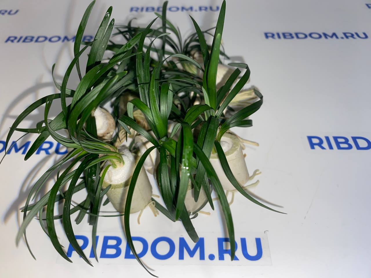 Офиопогон пусиллус (Ophiopogon pusillus), также известный как «японский ландыш» миниатюрный, — это изящное вечнозеленое растение, которое ценится за свою графичность и стойкость. В отличие от своих крупных собратьев, сорт Pusillus является самым миниатюрным представителем рода, формируя очень плотные, приземистые розетки из жестких, узких листьев темно-изумрудного цвета. Это идеальное растение для создания долговечных и аккуратных зеленых акцентов в аквариумах палюдариумах, флорариумах и влажных террариумах.
