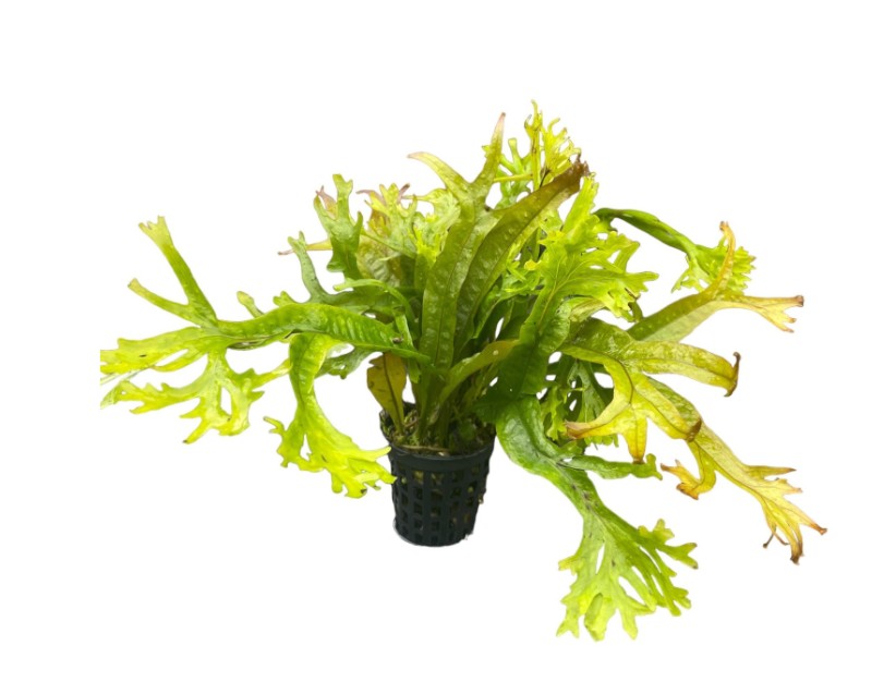 Папоротник мини Коралл — это редкая и невероятно декоративная форма папоротника, которая выделяется своей уникальной структурой листьев. В отличие от классического тайландского папоротника с длинными ланцетовидными листьями, сорт 'Coral' образует причудливо закрученные, кораллоподобные листовые пластины. Листья плотные, кожистые, насыщенного зелёного цвета. Растёт медленно, формируя компактный, объёмный и очень фактурный куст, который становится настоящим украшением аквариума и притягивает взгляд своей необычной формой.