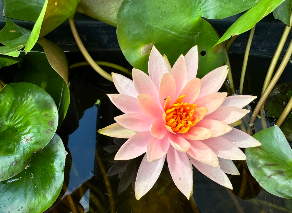 Нимфея «Колорадо» (Nymphaea ‘Colorado’) — это эффектный сорт водяной лилии, выведенный известным американским селекционером Кирком Строуном в 1994 году . Главная особенность растения — необычная, меняющаяся окраска цветков: от нежного лососёво-розового до насыщенно-оранжевого, в зависимости от освещения и температуры . Крупные звездчатые цветки диаметром 12–18 см с яркими жёлто-оранжевыми тычинками возвышаются над водой на 10 см, обладая лёгким ароматом . Тёмно-зелёные округлые листья с красновато-коричневыми пятнами создают на поверхности воды декоративный ковёр .