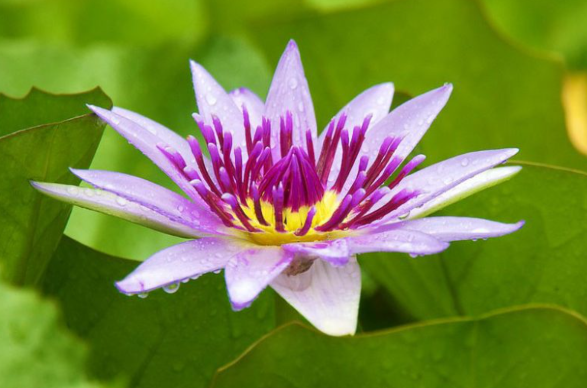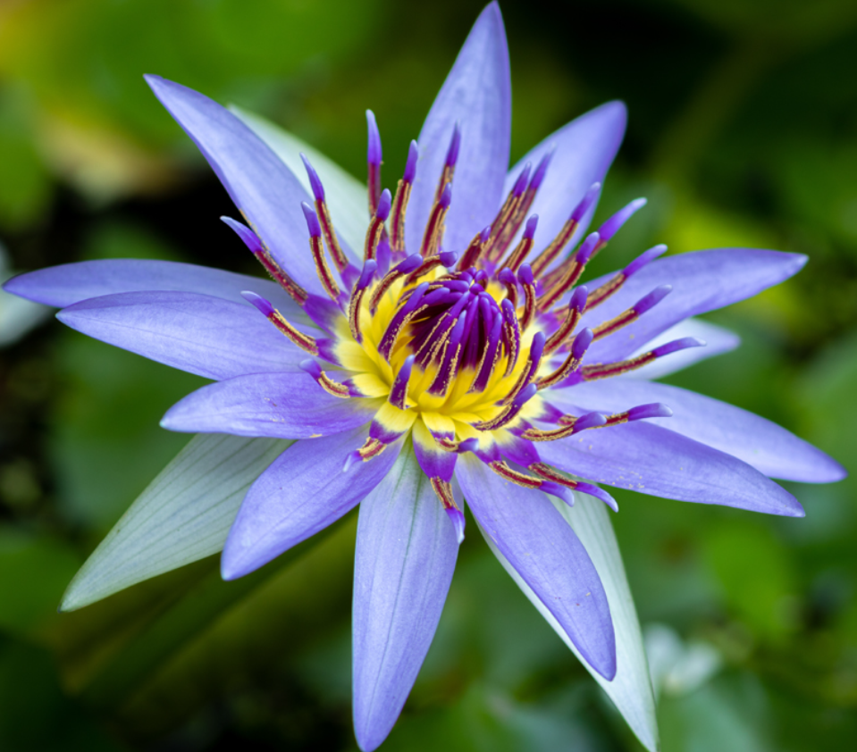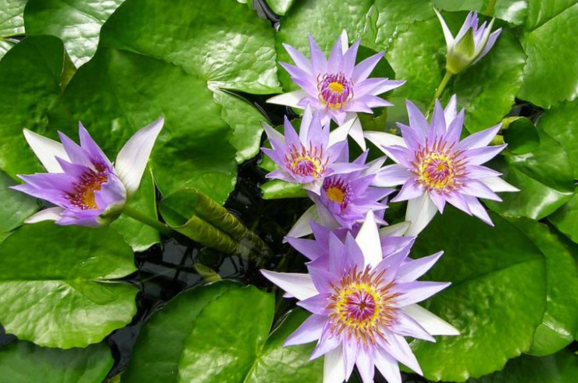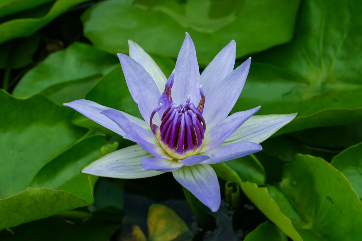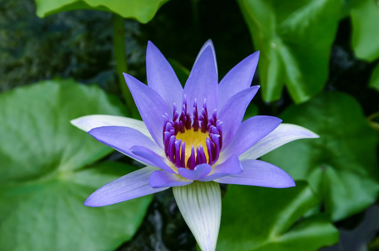 Нимфея прудовая «Колората» (Nymphaea colorata) — это изящный тропический сорт водяной лилии, который привлекает внимание необычной звездчатой формой и насыщенным цветом. Её цветки варьируются от ярко-голубого до насыщенно-фиолетового с эффектными массивными тычинками в центре . Этот природный вид из Восточной Африки цветёт с весны до осени, поднимая бутоны над водой , а его тёмно-зелёные листья с пятнами создают на поверхности декоративный ковёр.