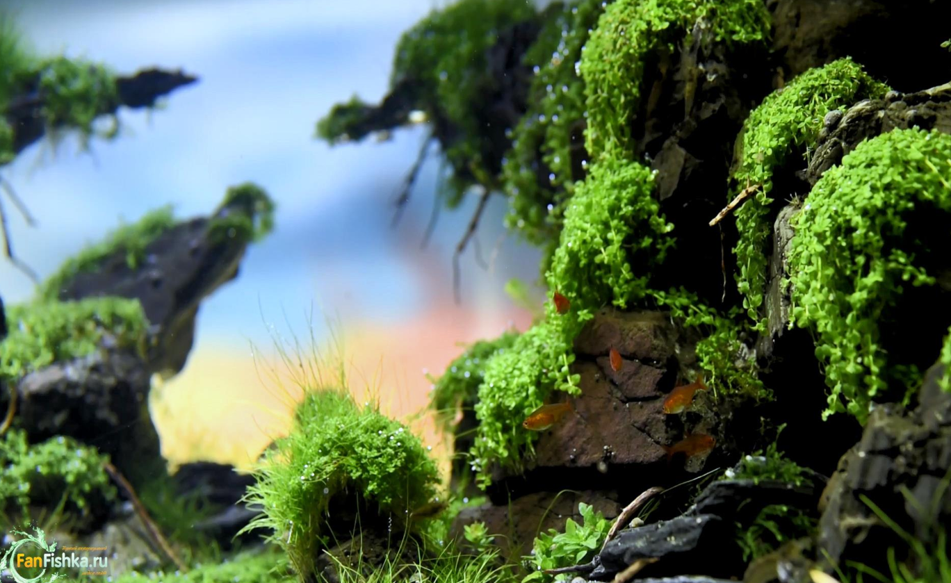 - Эпифитный способ выращивания: Уникальная особенность этого растения — возможность выращивать его на корягах и камнях. Со временем оно начинает красиво свисать с декораций, создавая эффект «зелёного водопада» .