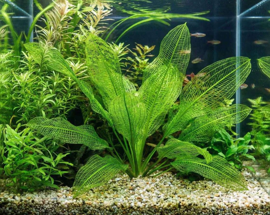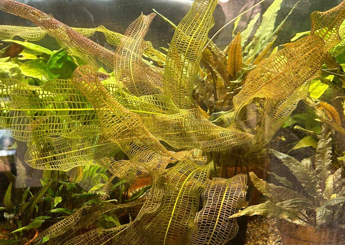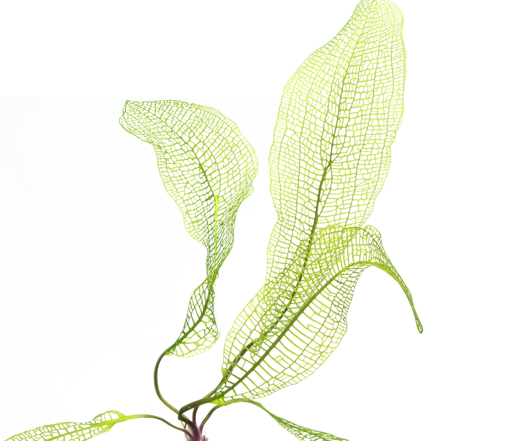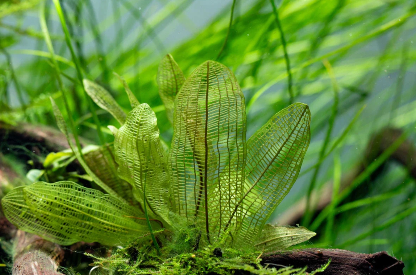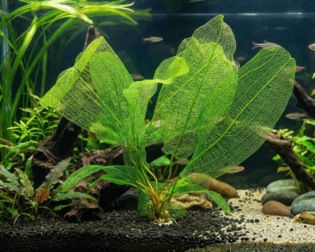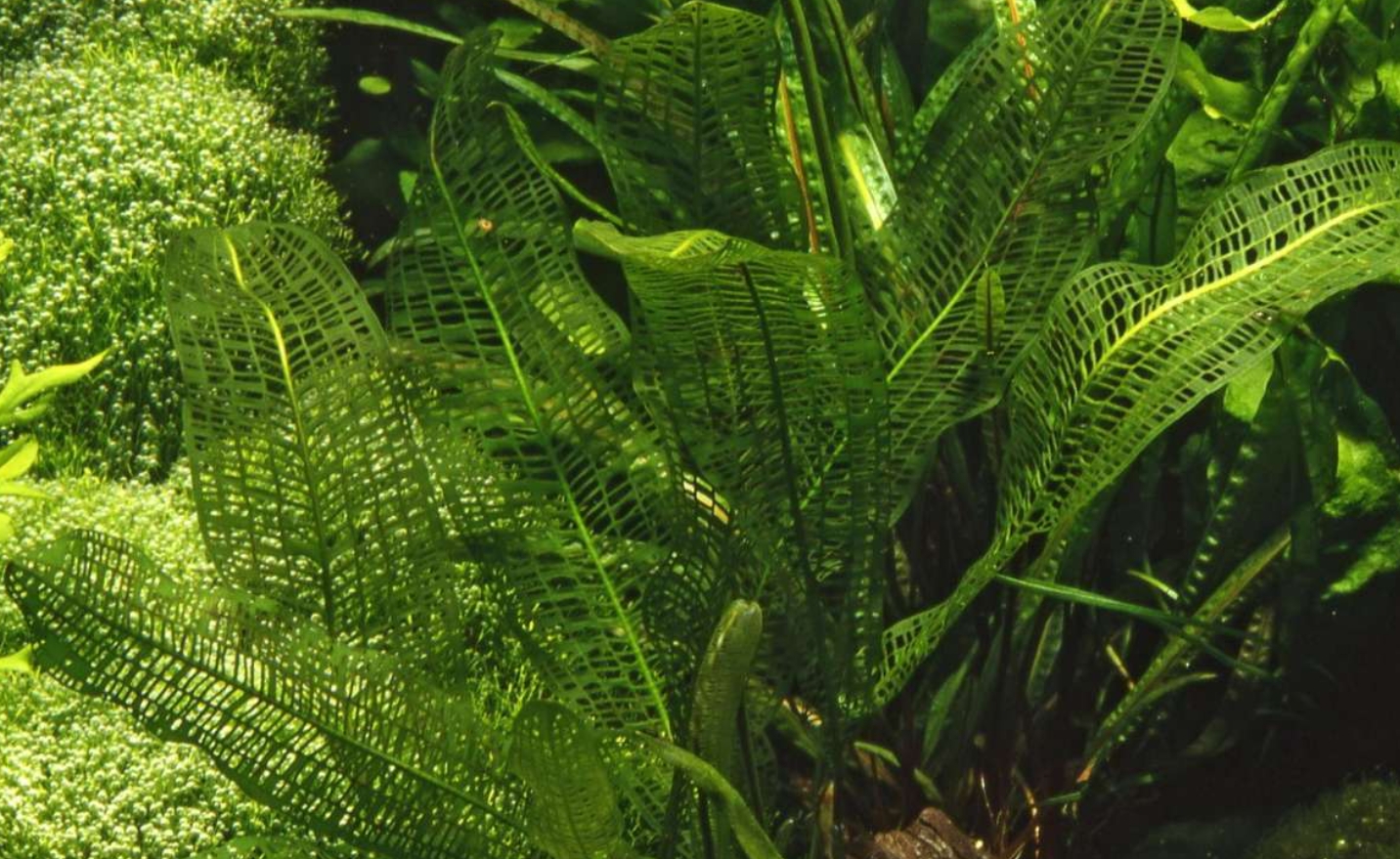 Апоногетон мадагаскарский (Aponogeton madagascariensis), более известный как «увивиандра» или сетчатый апоногетон, — это одно из самых фантастических и загадочных растений в мире аквариумистики. Его уникальность заключается в строении листовой пластины: она полностью лишена мягких тканей между жилками, представляя собой живое кружево или идеальную геометрическую сетку. Темно-зеленые, почти черные или оливковые листья-скелетоны выглядят в аквариуме как произведение ювелирного искусства, приковывая взгляд своей неземной красотой и хрупкостью.