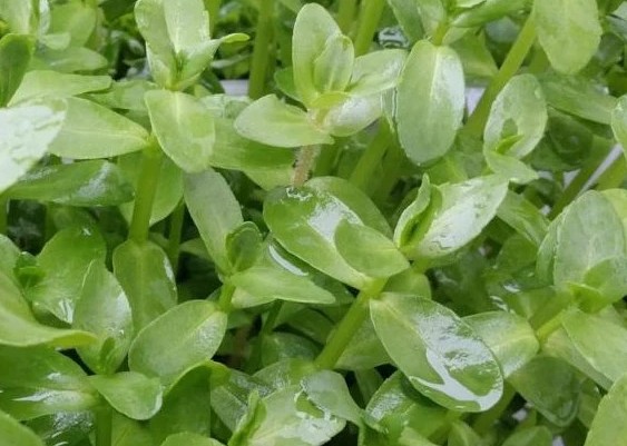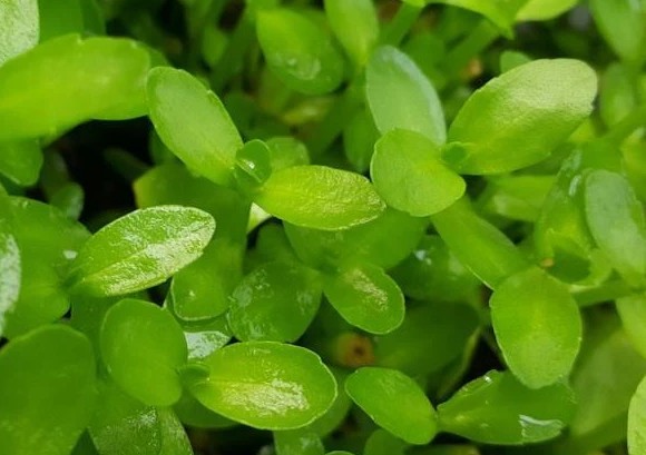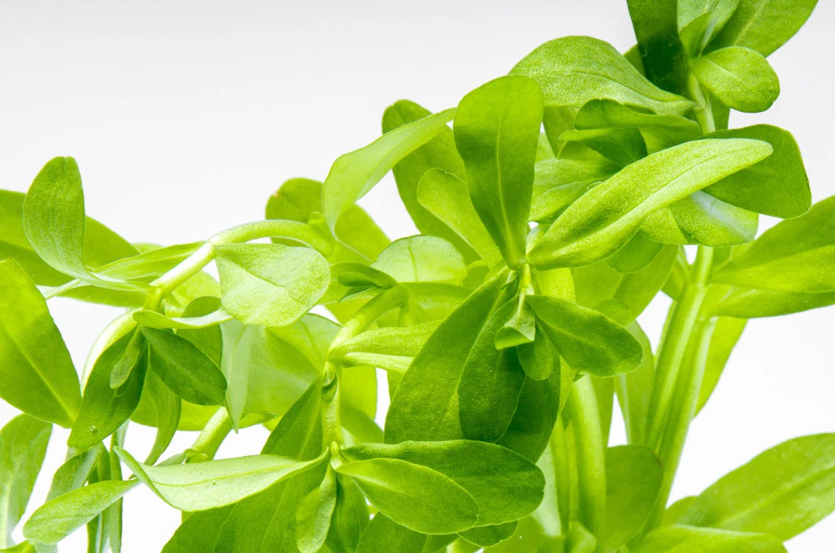 Бакопа мадагаскарская (Bacopa madagascariensis) — это редкое и очень декоративное длинностебельное растение, которое выделяется среди других видов своей особой статью. Ее плотные, мясистые листья ярко-зеленого цвета располагаются на крепком стебле правильными парами, создавая строгий и аккуратный вертикальный силуэт. В аквариуме она формирует стройные группы, которые выглядят очень лаконично и естественно, напоминая миниатюрные побеги бамбука или суккуленты.