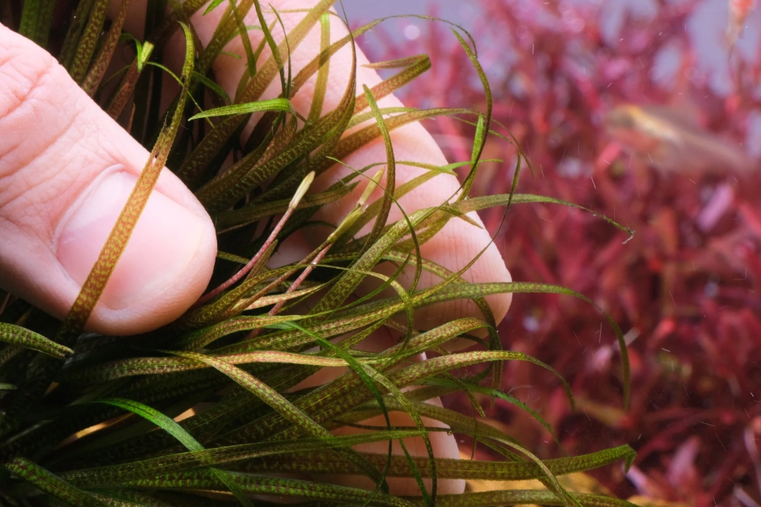 Бликса японская (Blyxa japonica) — одно из самых востребованных и стильных растений в современном акваскейпинге. Несмотря на свой внешний вид, напоминающий траву, это истинное длинностебельное растение, которое формирует плотные, компактные и очень пышные кусты. Ее узкие, ланцетные листья имеют приятную мягкую текстуру и могут менять окраску от насыщенного травянисто-зеленого до золотисто-оливкового и даже красноватого оттенка при интенсивном освещении. Бликса создает в аквариуме эффект естественной «подводной лужайки», добавляя композиции динамику и природную глубину.