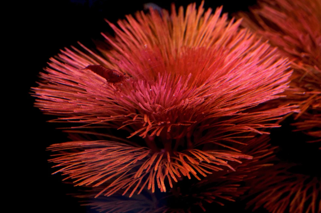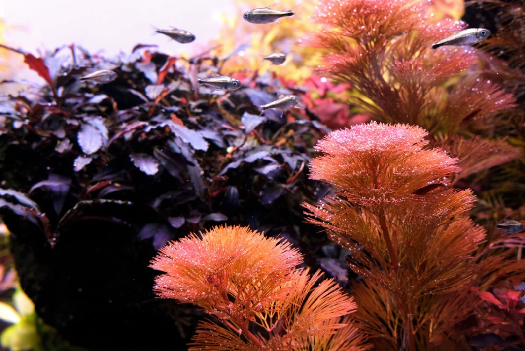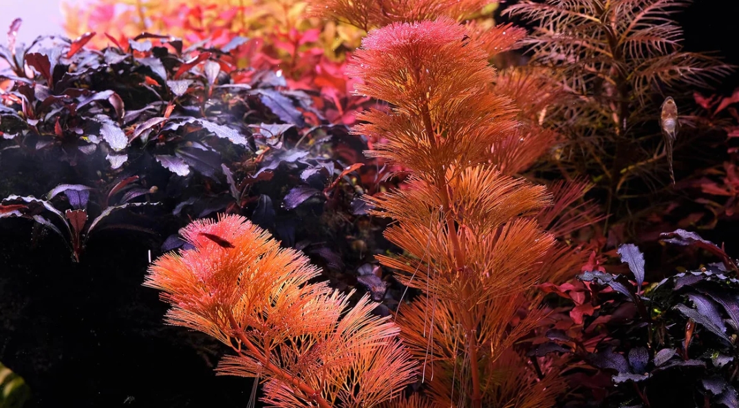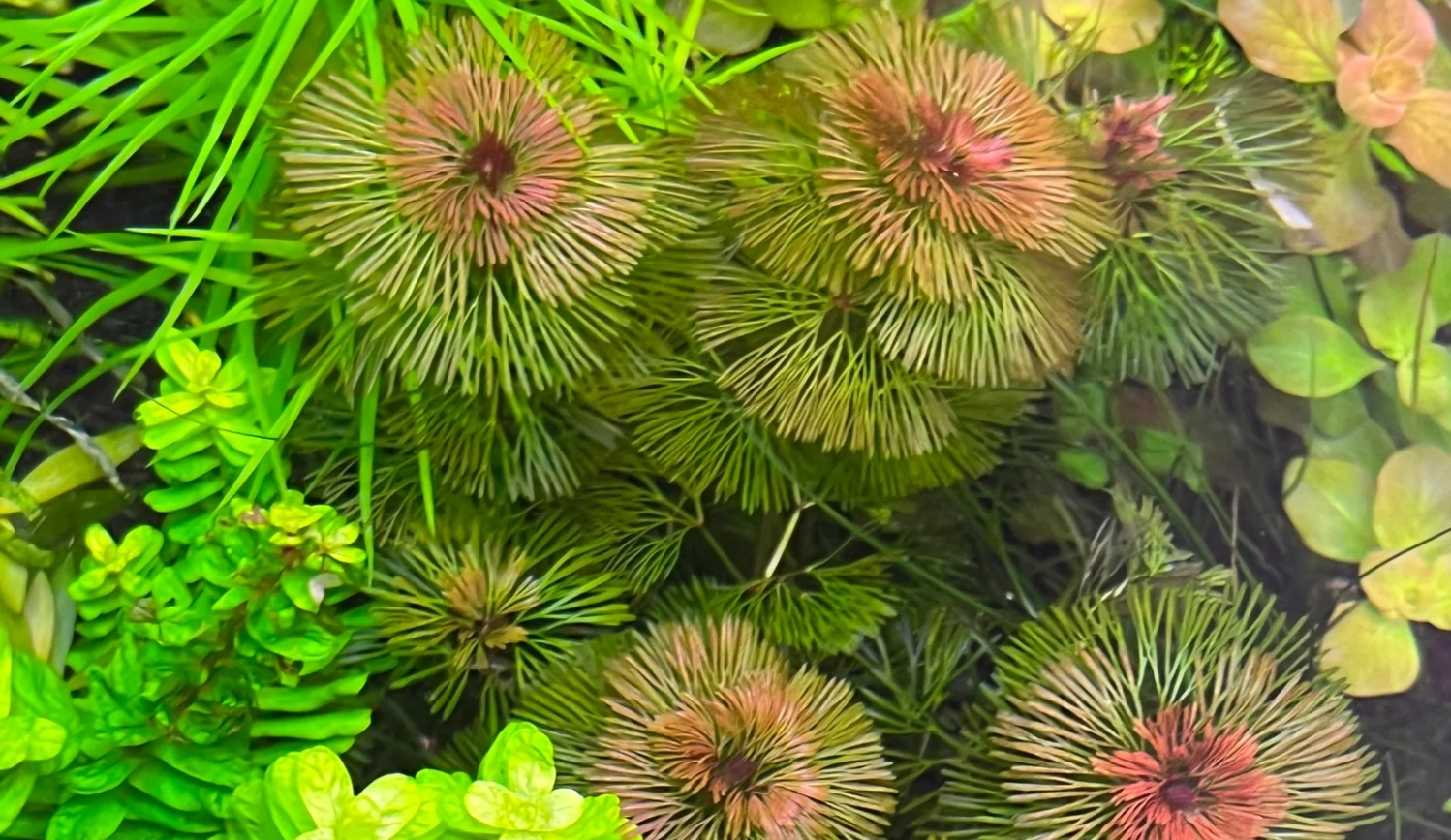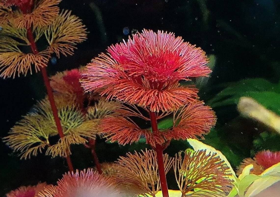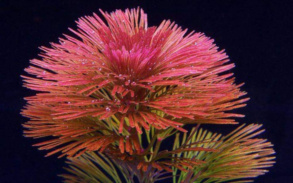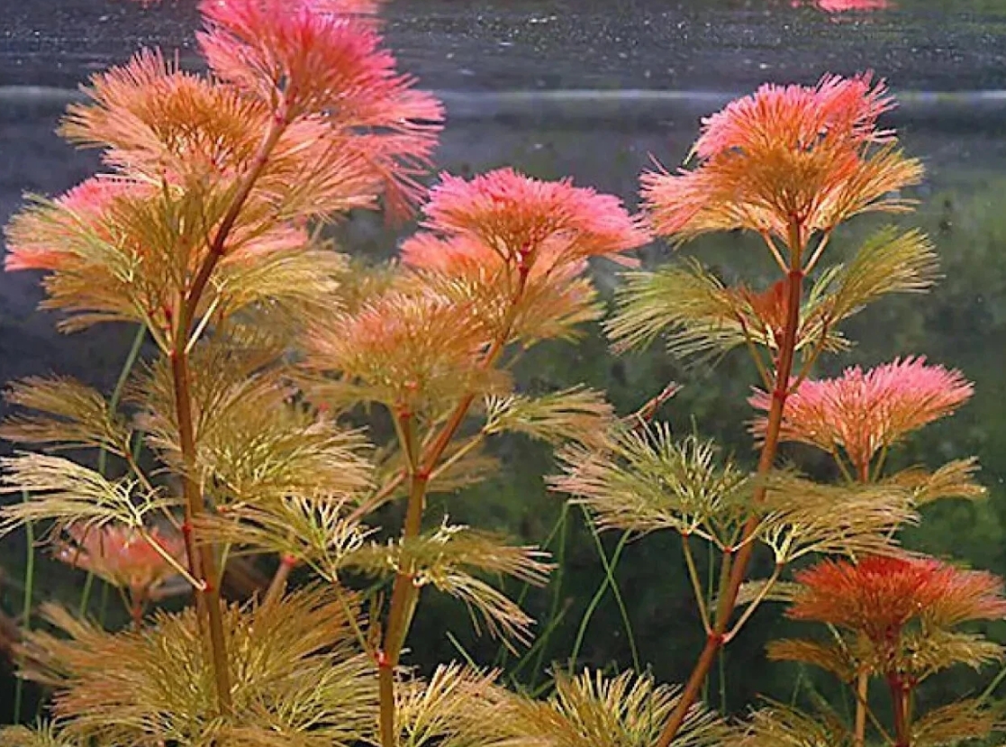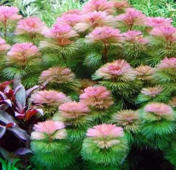 Кабомба водная красная (Cabomba furcata) — это одно из самых изысканных и эффектных аквариумных растений. В отличие от своей зеленой родственницы, она обладает уникальной окраской: ее тончайшие, веерообразные листья переливаются оттенками розового, винно-красного и даже фиолетового. В аквариуме она создает невероятно нежные, воздушные облака, которые привносят в подводный ландшафт яркость и благородный колорит, становясь главным украшением заднего плана.