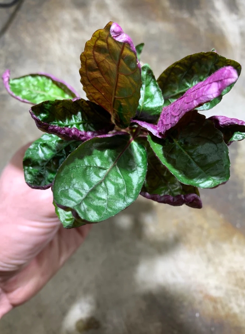Хемиграфис широколистный станет прекрасной покупкой для тех, кто ищет яркий и необычный цветовой акцент. Его фантастическая фиолетовая окраска и фактурные листья моментально оживляют любую композицию, делая его идеальным выбором для создания экзотических акцентов в прибрежной зоне или временных декораций в аквариуме.