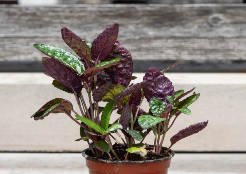 Хемиграфис широколистный (Hemigraphis alternata) — это необычайно эффектное растение, которое привлекает внимание своей уникальной цветовой палитрой. Его широкие, яйцевидные листья имеют рельефную, «жатую» поверхность. Лицевая сторона пластины переливается серебристо-зелеными и стальными оттенками, в то время как нижняя часть окрашена в глубокий, насыщенный пурпурный или фиолетовый цвет. В аквариумистике это растение ценится за свою экзотическую внешность, однако важно помнить, что хемиграфис является полуводным видом и лучше всего чувствует себя в условиях влажной оранжереи или палюдариума.