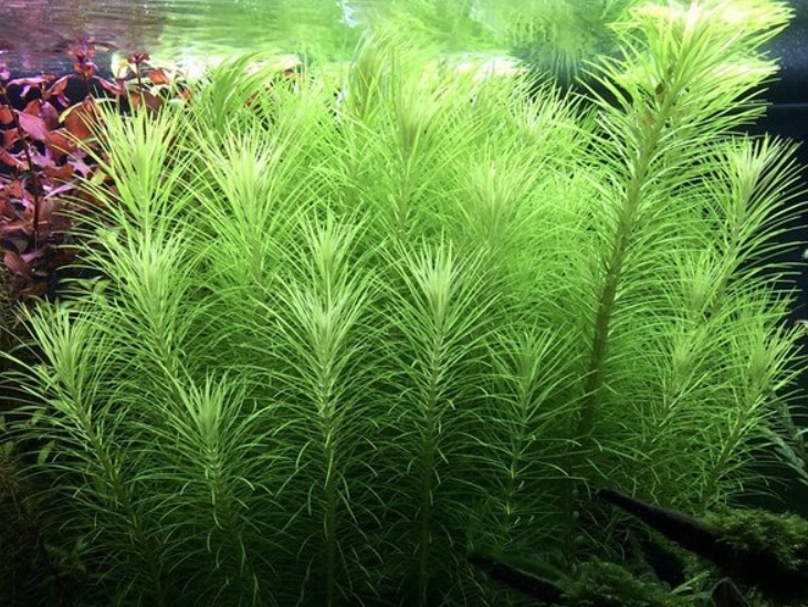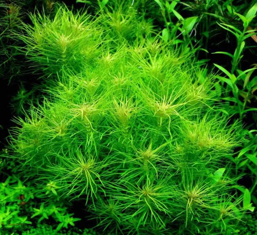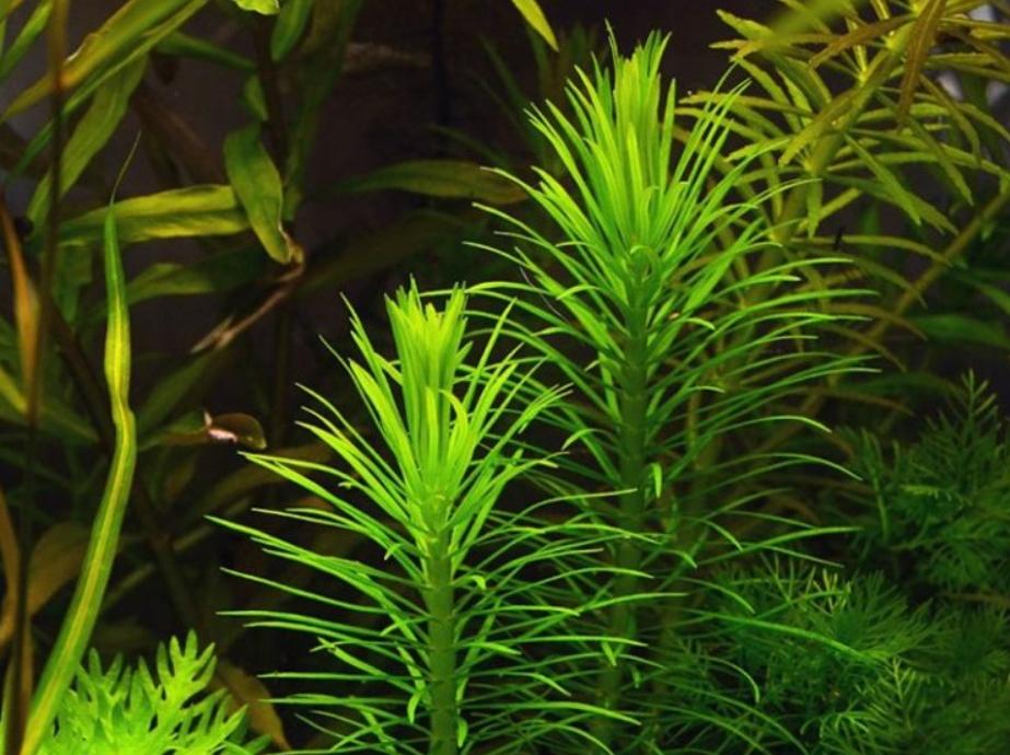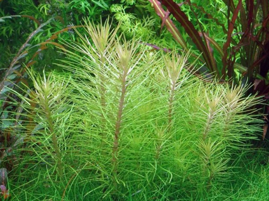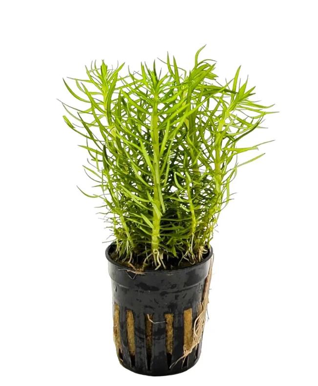 Погостемон эректус (Pogostemon erectus) — это уникальное длинностебельное растение, которое своим внешним видом больше напоминает миниатюрную хвойную веточку или пушистый хвощ, чем классического обитателя тропических вод. Его узкие, игольчатые листья ярко-изумрудного цвета собраны в очень плотные мутовки на жестком вертикальном стебле. В аквариуме он формирует строгие, идеально ровные и густые группы, которые выглядят невероятно аккуратно и архитектурно, создавая эффект сказочного подводного леса.