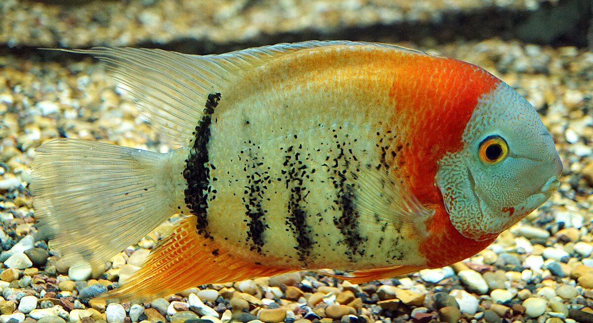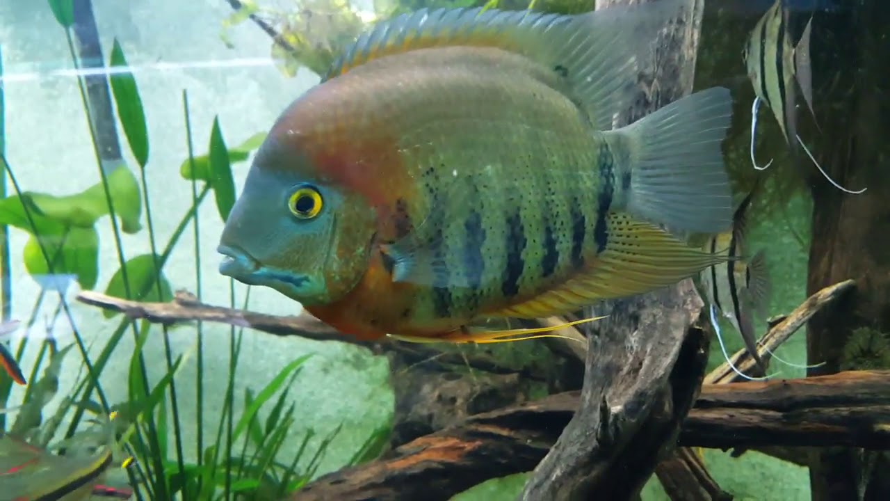 - При содержании в просторном аквариуме цихлазома северум становится похожей на диск.