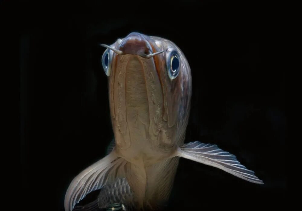 - Снизу рта — пара усиков, которые чувствительные и служат у рыбы локатором во время охоты.