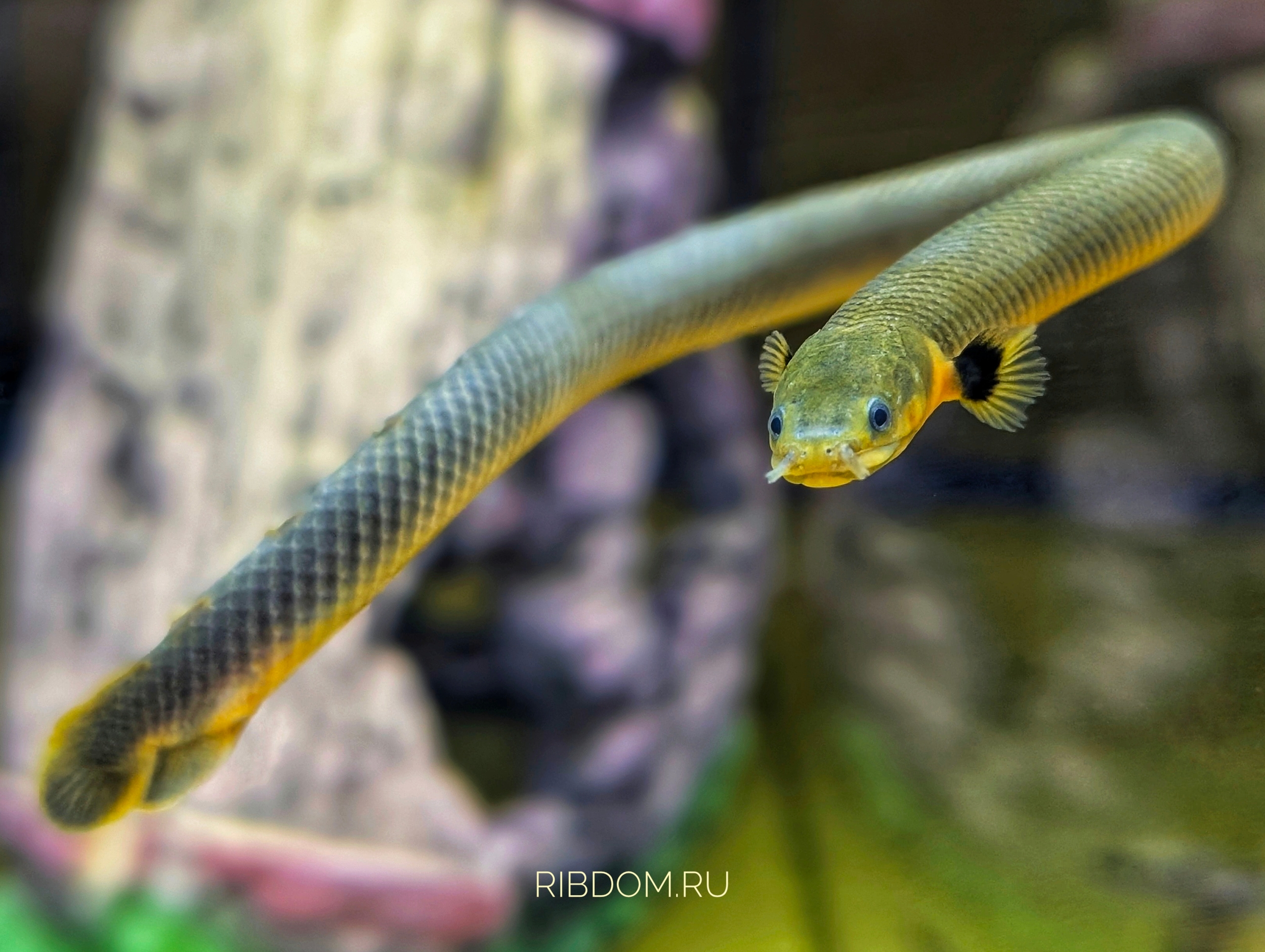 Важно: аквариум должен быть оснащён плотной крышкой, так как рыба-змея способна выпрыгивать из воды и просачиваться в небольшие отверстия.