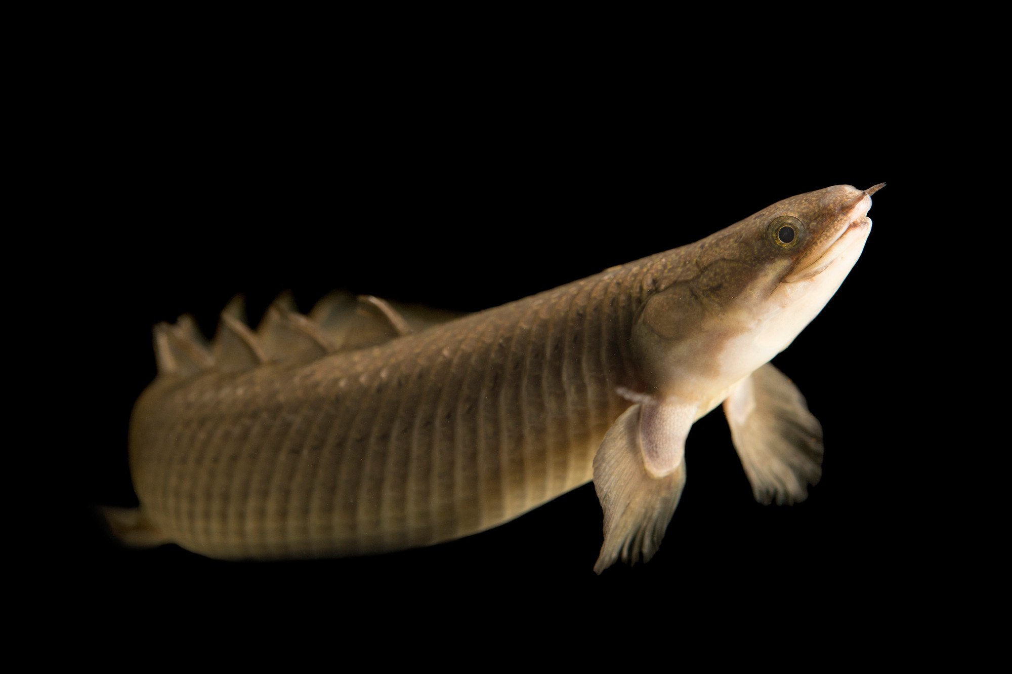 - Грудные плавники: мясистые, их рыба использует для медленного перемещения в воде или по илу между пересыхающими водоёмами.