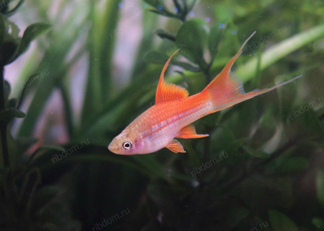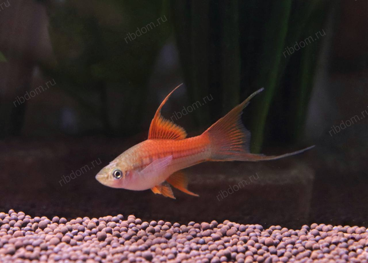 - У самцов также удлинённый нижний хвостовой луч («меч»).