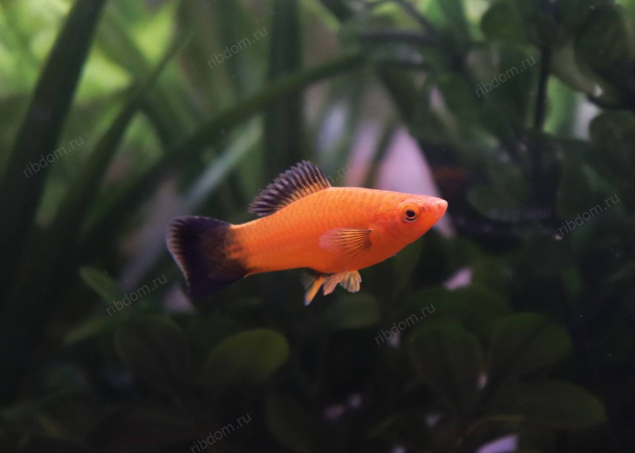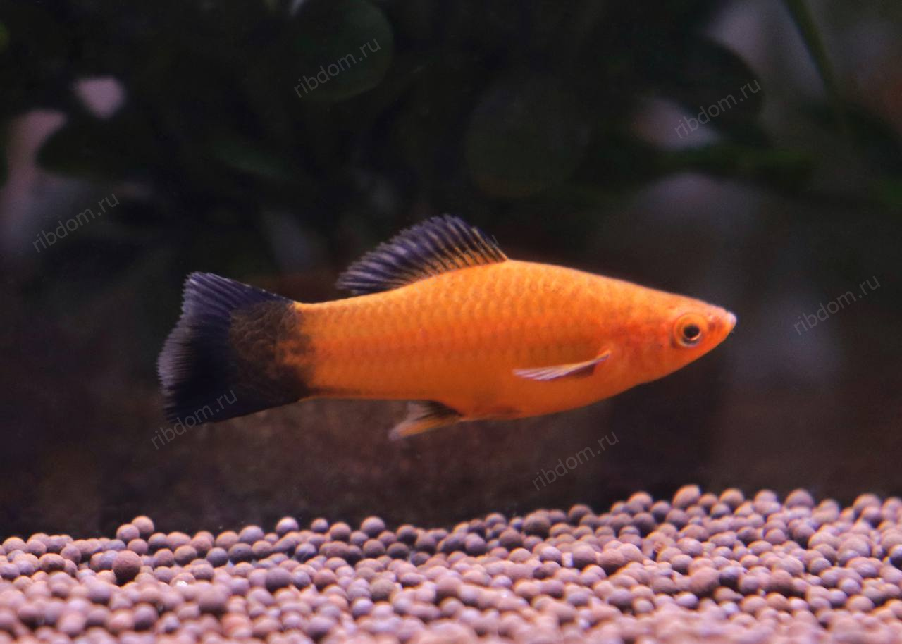 - Характерная особенность — черный хвост и плавники.