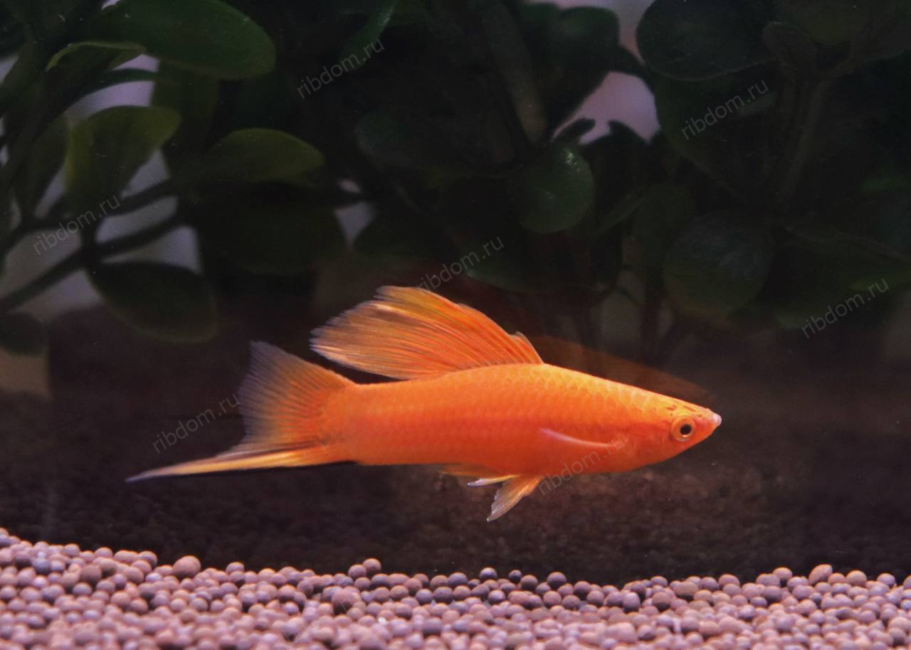 Меченосец красный флаговый (Xiphophorus hellerii “Red Lyretail”) — эффектная разновидность меченосца с насыщенной красной окраской и флаговым плавником. Рыбка выглядит очень изящно и сразу выделяется в аквариуме. Неприхотлива, подходит как начинающим, так и опытным аквариумистам.
