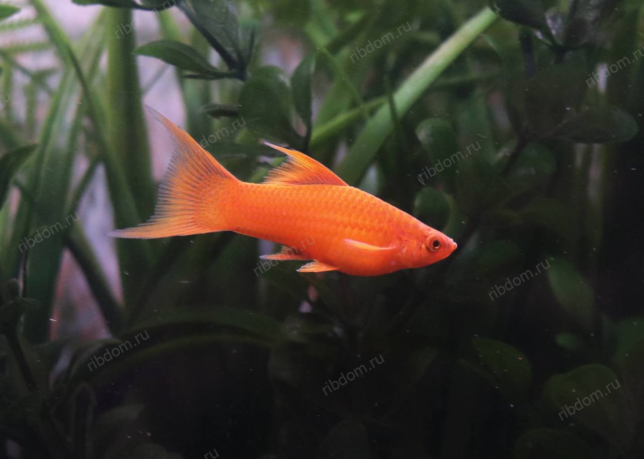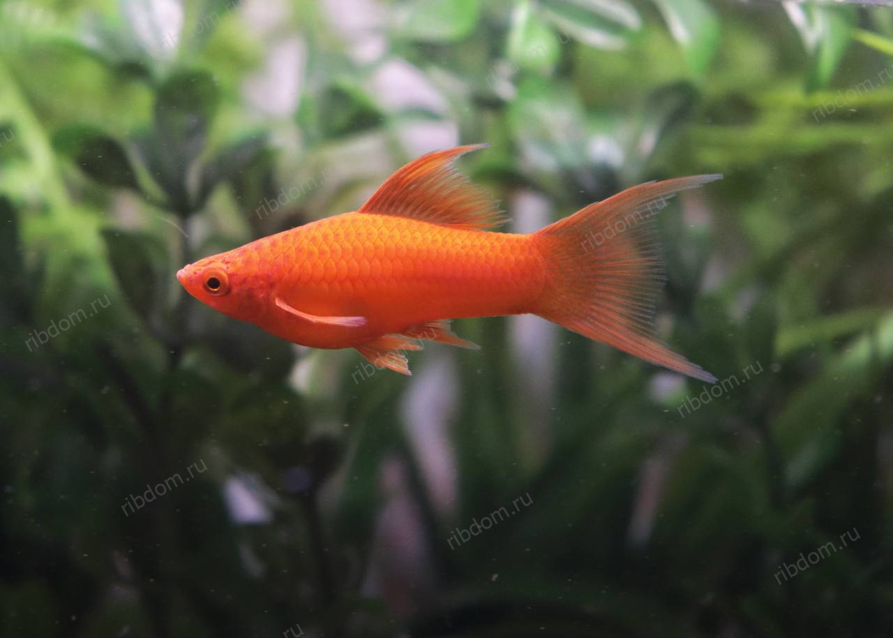 Меченосец красный вилка (Xiphophorus hellerii “Red Lyretail”) — изящная декоративная разновидность меченосца с ярко-красным телом и лировидным хвостом, форма которого напоминает «вилку». Благодаря элегантным удлинённым плавникам эта рыбка смотрится особенно эффектно и становится украшением любого аквариума.