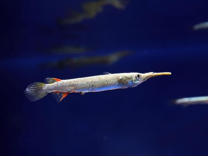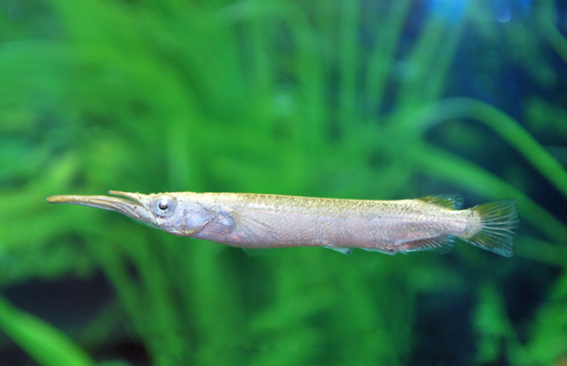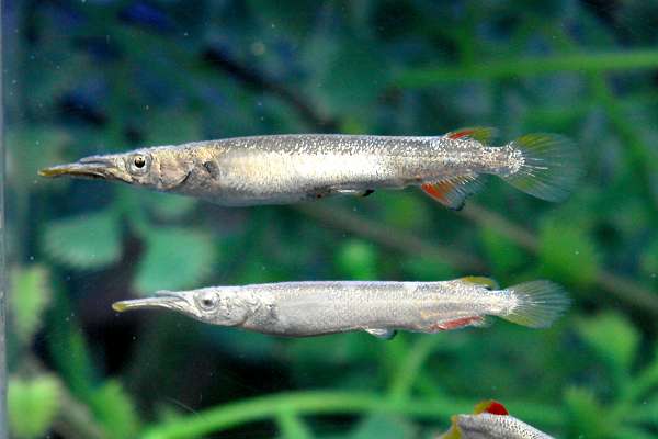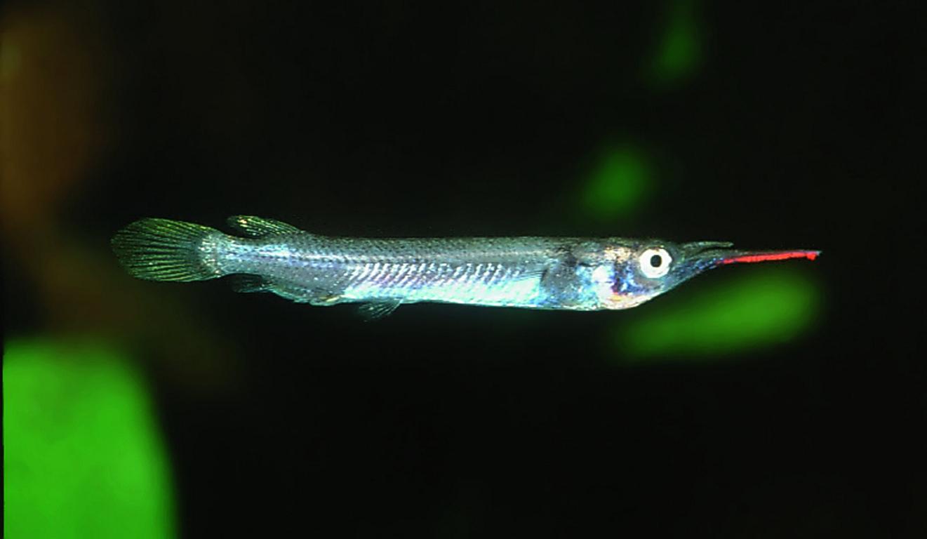 Особое строение ротового аппарата: нижняя неподвижная челюсть почти в два раза длиннее подвижной верхней. Это приспособление служит для захвата с поверхности воды насекомых, даже крупных относительно размеров самой рыбки.
