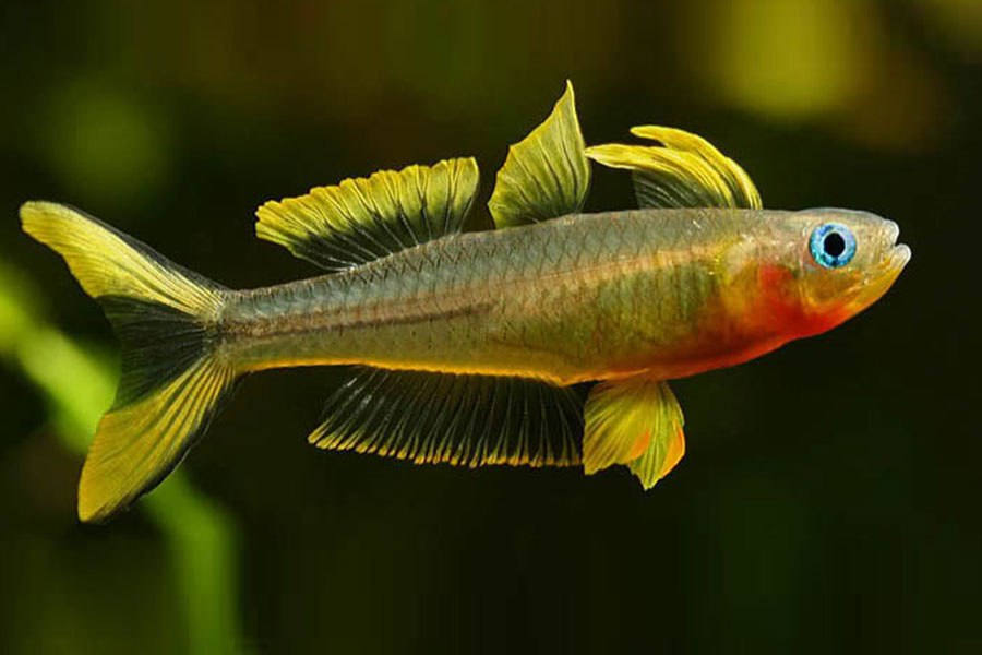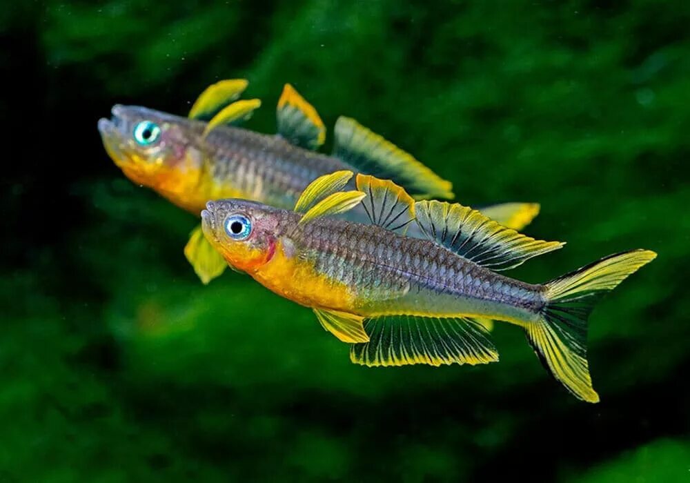 - Половые различия: самцы ярче, с более крупными плавниками; самки бледнее, с прозрачными плавниками.